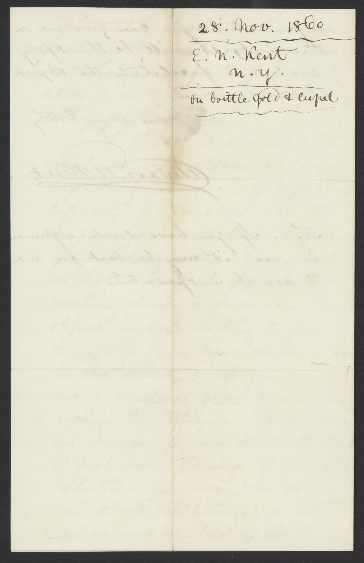 Letter from Edward N. Kent to James Curtis Booth, November 28, 1860
