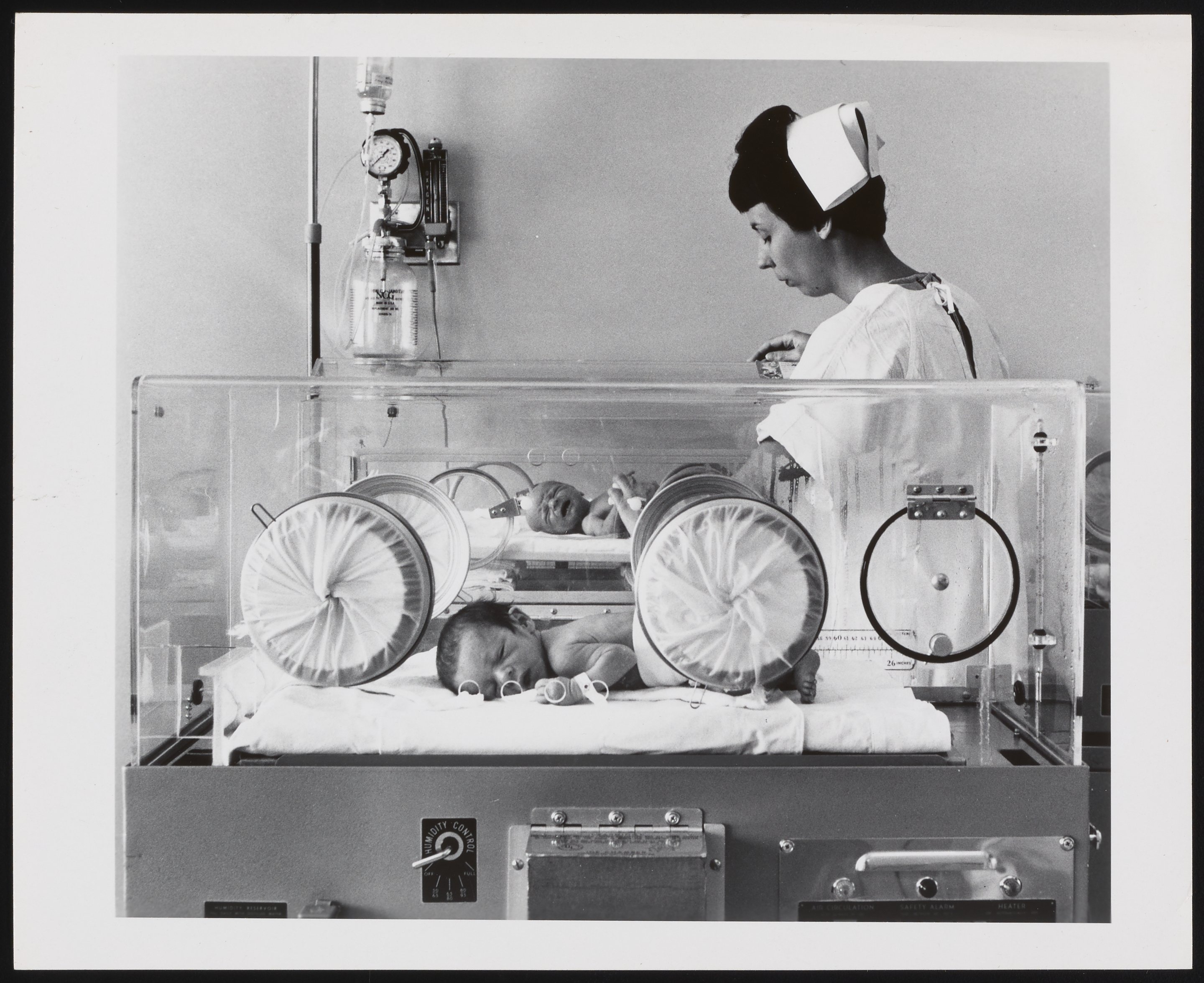 “Nurse Monitoring Two Infants in Incubators,” n.d. Beckman Historical Collection, Box 82. Science History Institute. Philadelphia. https://digital.sciencehistory.org/works/5x21tf55s.