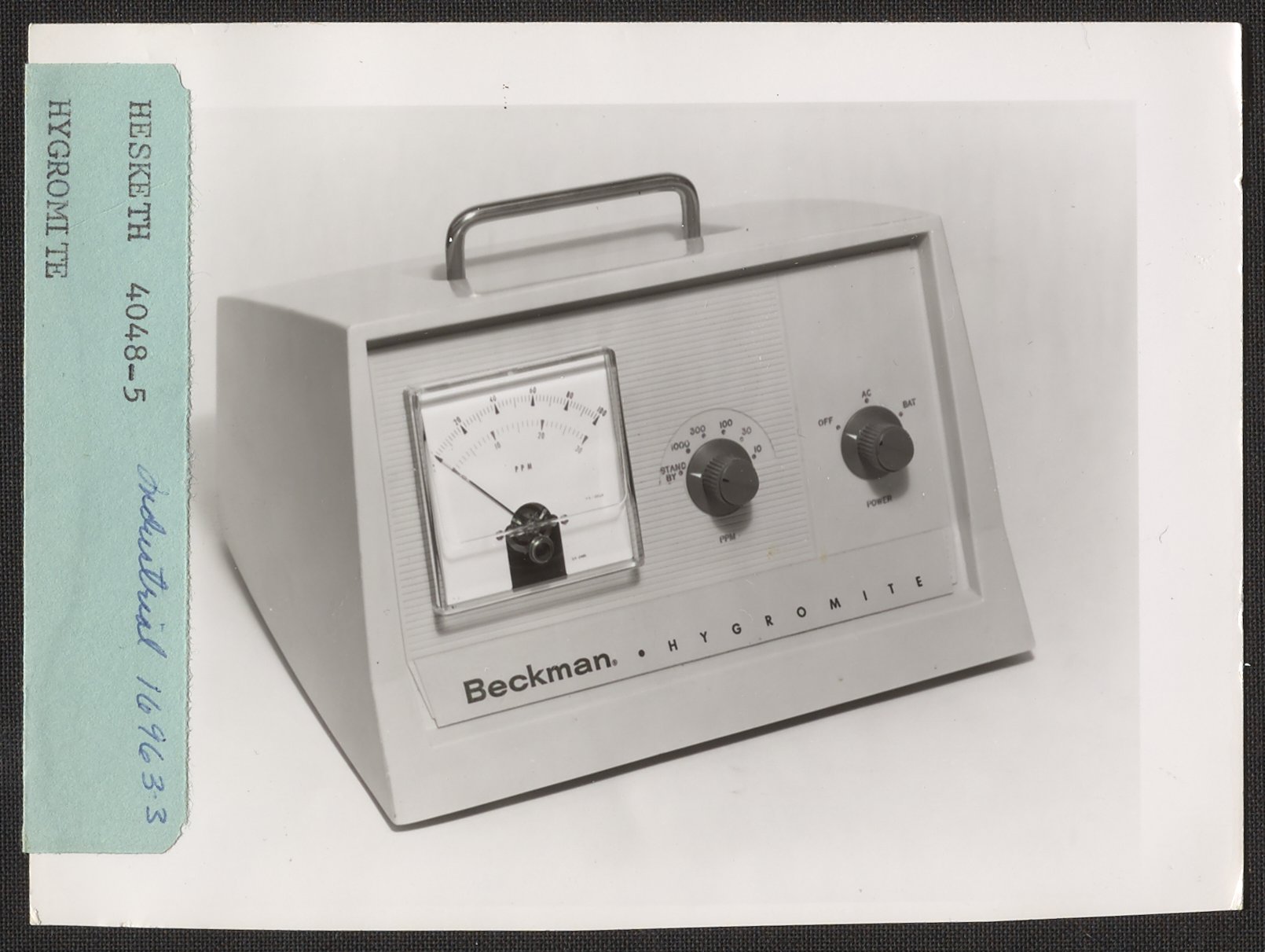 Hesketh, Dean D. “Beckman Hygromite,” n.d. Beckman Historical Collection, Box 84. Science History Institute. Philadelphia. https://digital.sciencehistory.org/works/5x21tf60n.