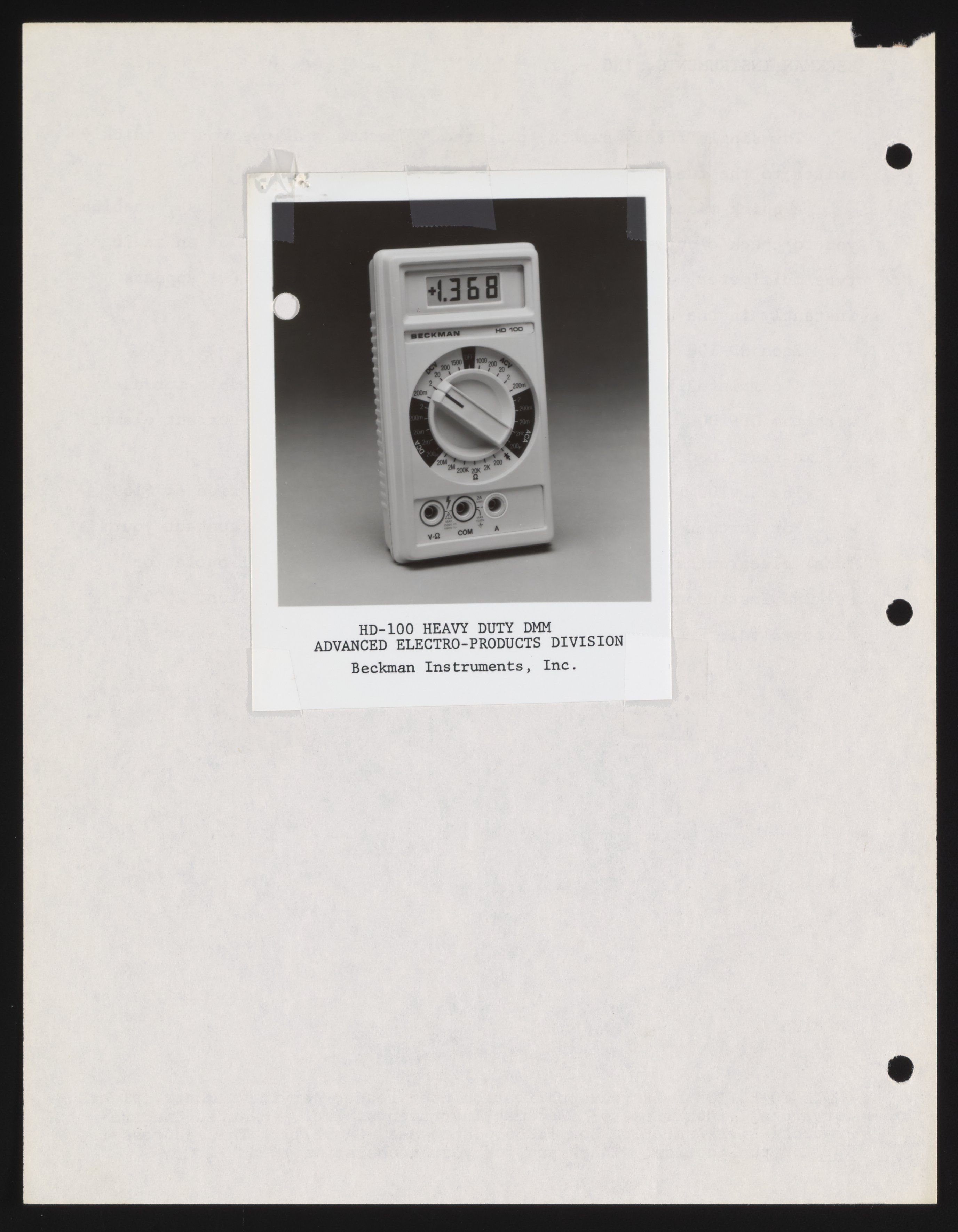 Fowler, Will. “Beckman Introduces a Heavy Duty DMM Portable That Can Really Take It,” May 5, 1981. Beckman Historical Collection, Box 58, Folder 69. Science History Institute. Philadelphia. https://digital.sciencehistory.org/works/6108vb74j.
