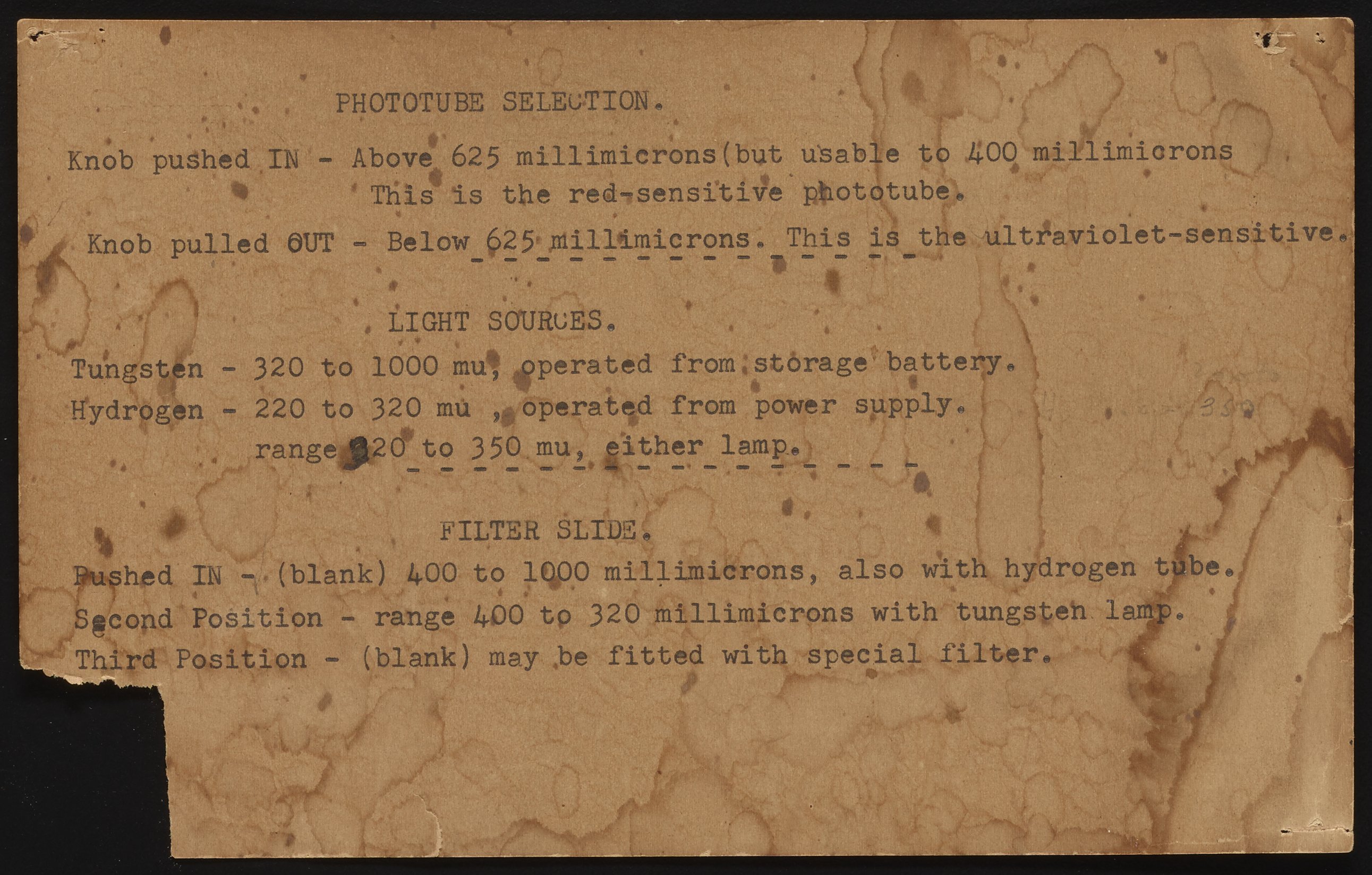 “Beckman DU Spectrophotometer Phototube Selection Guidelines,” n.d. Beckman Historical Collection, Box 17, Folder 19. Science History Institute. Philadelphia. https://digital.sciencehistory.org/works/6395w709f.