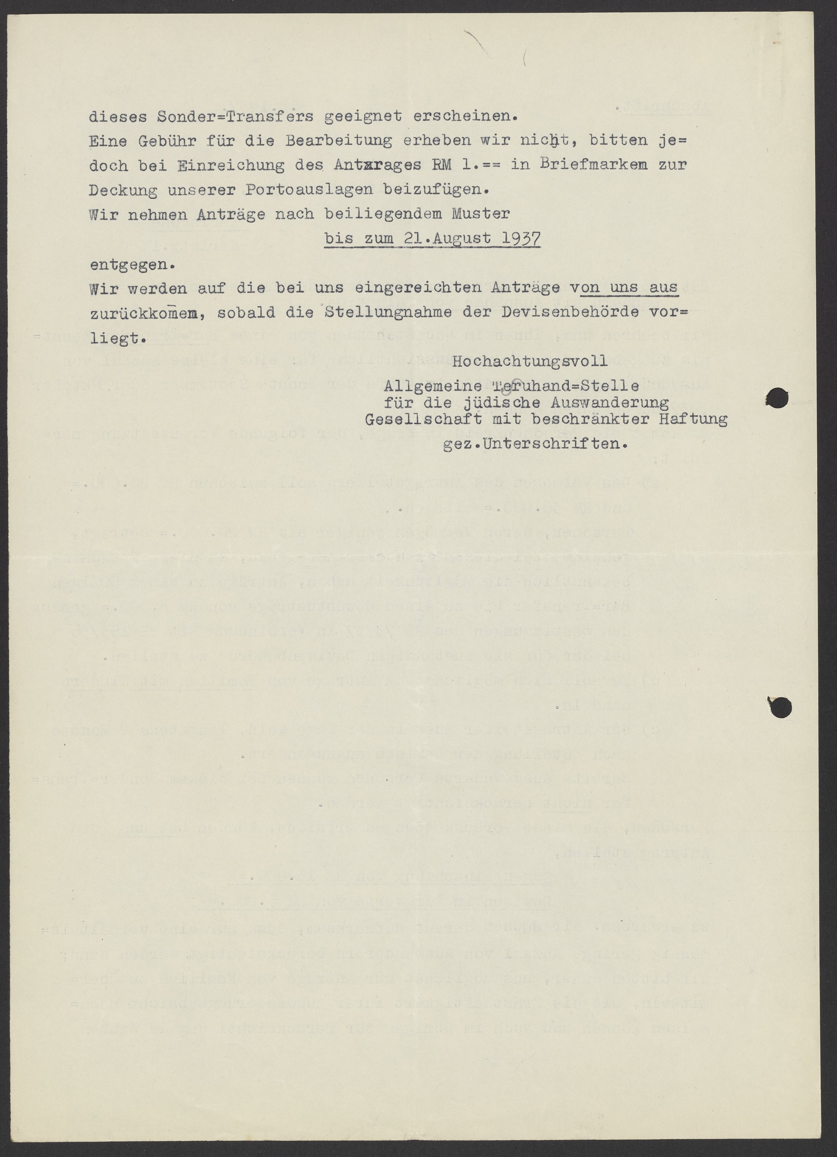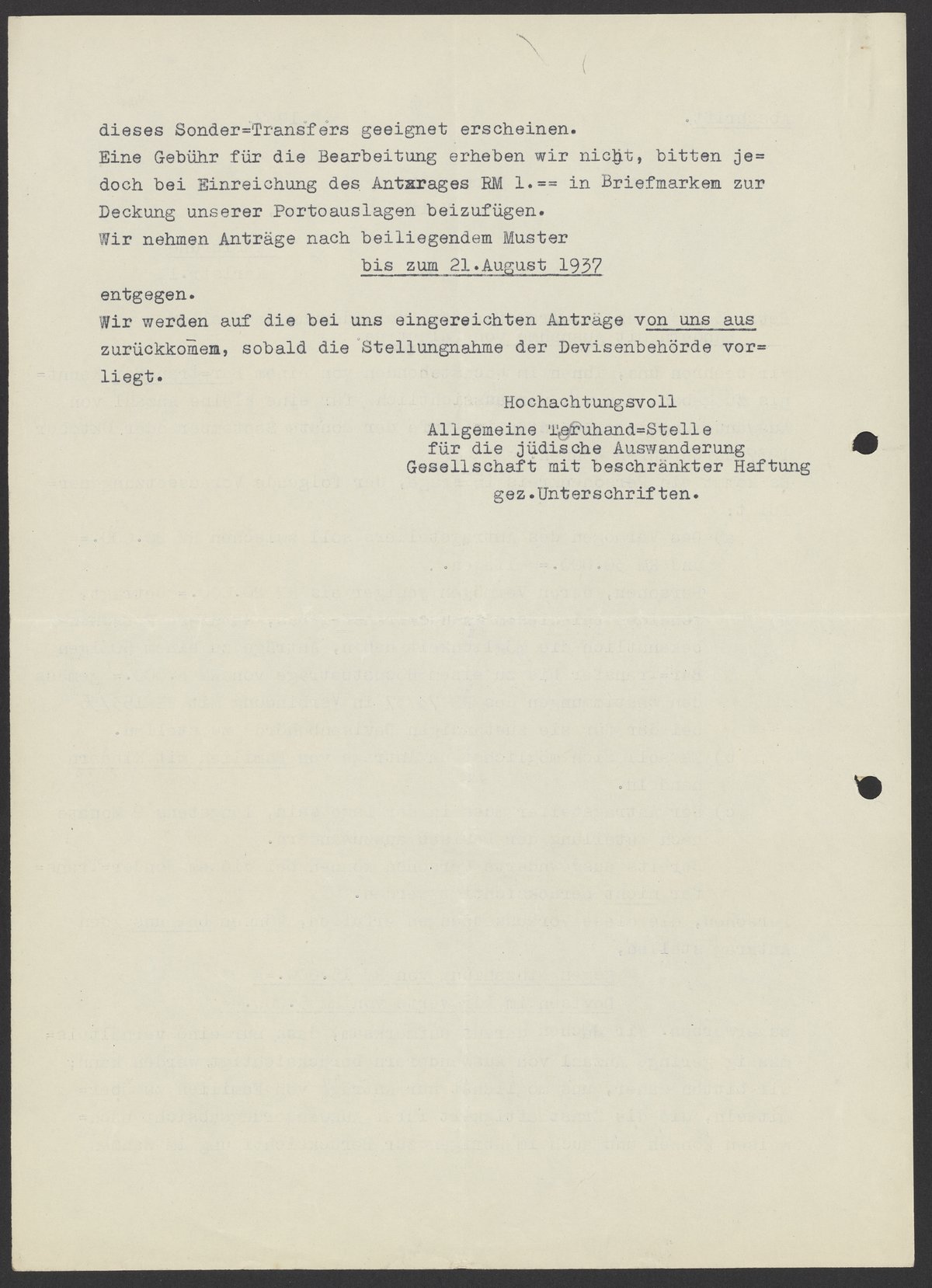 Allgemeine Treuhand-Stelle fur die Judische Auswanderung. “Letter from the General Trust Office for Jewish Emigration to Viet L. Homburger, August 3, 1937,” August 3, 1937. Papers of Georg and Max Bredig, Box 10, Folder 8. Science History Institute. Philadelphia. https://digital.sciencehistory.org/works/65cmuly.