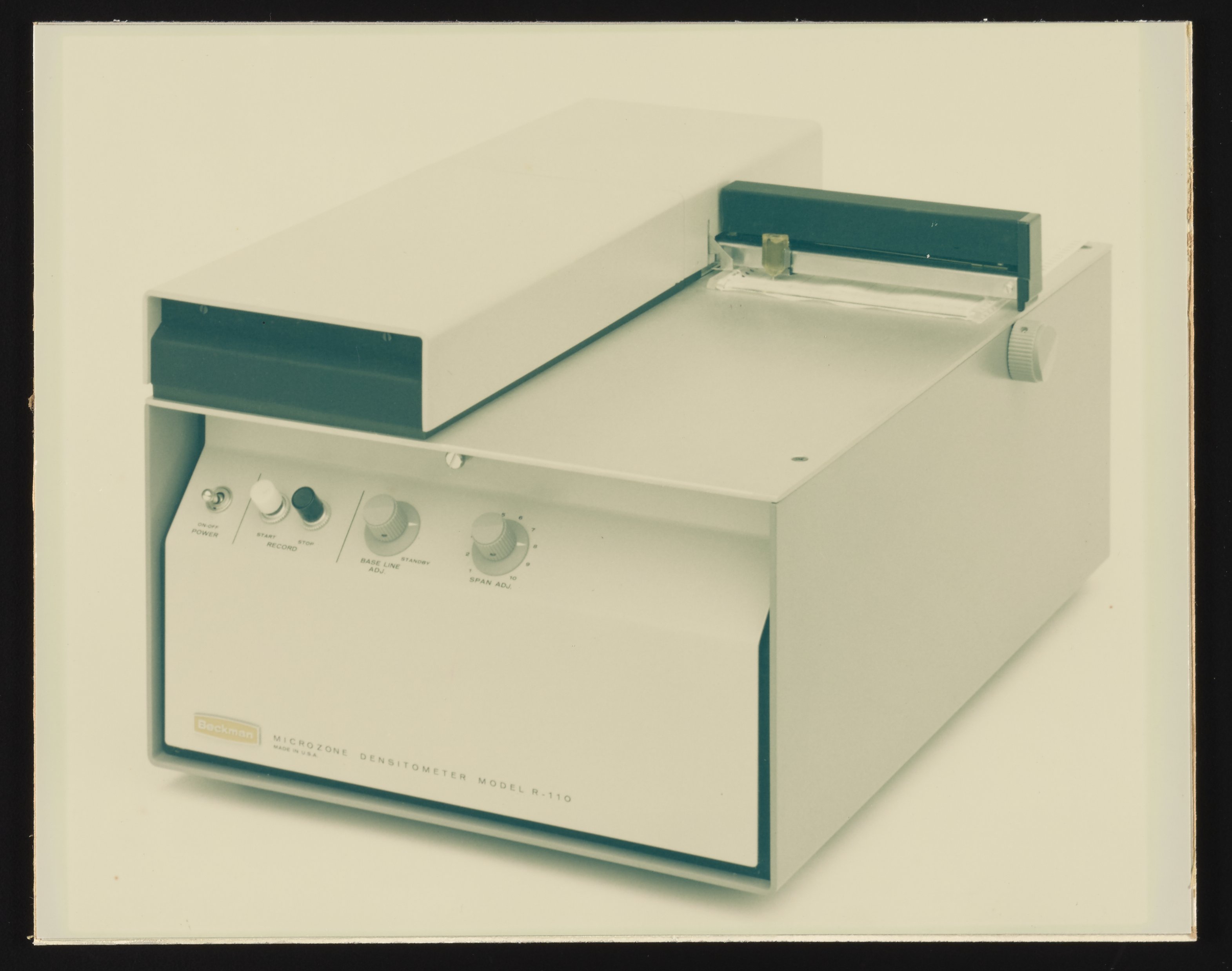 Illig, Russell. “Beckman Model R-101 Microzone Cell and Model R-110 Microzone Densitometer,” n.d. Beckman Historical Collection, Box 59, Folder 135. Science History Institute. Philadelphia. https://digital.sciencehistory.org/works/6682x441f.