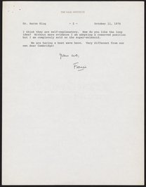 Crick, Francis. “Letter from Francis Crick to Aaron Klug, October 11, 1976,” October 11, 1976. History of Molecular Biology Collection, Box 19, Folder 25. Science History Institute. Philadelphia. https://digital.sciencehistory.org/works/67du4t0.