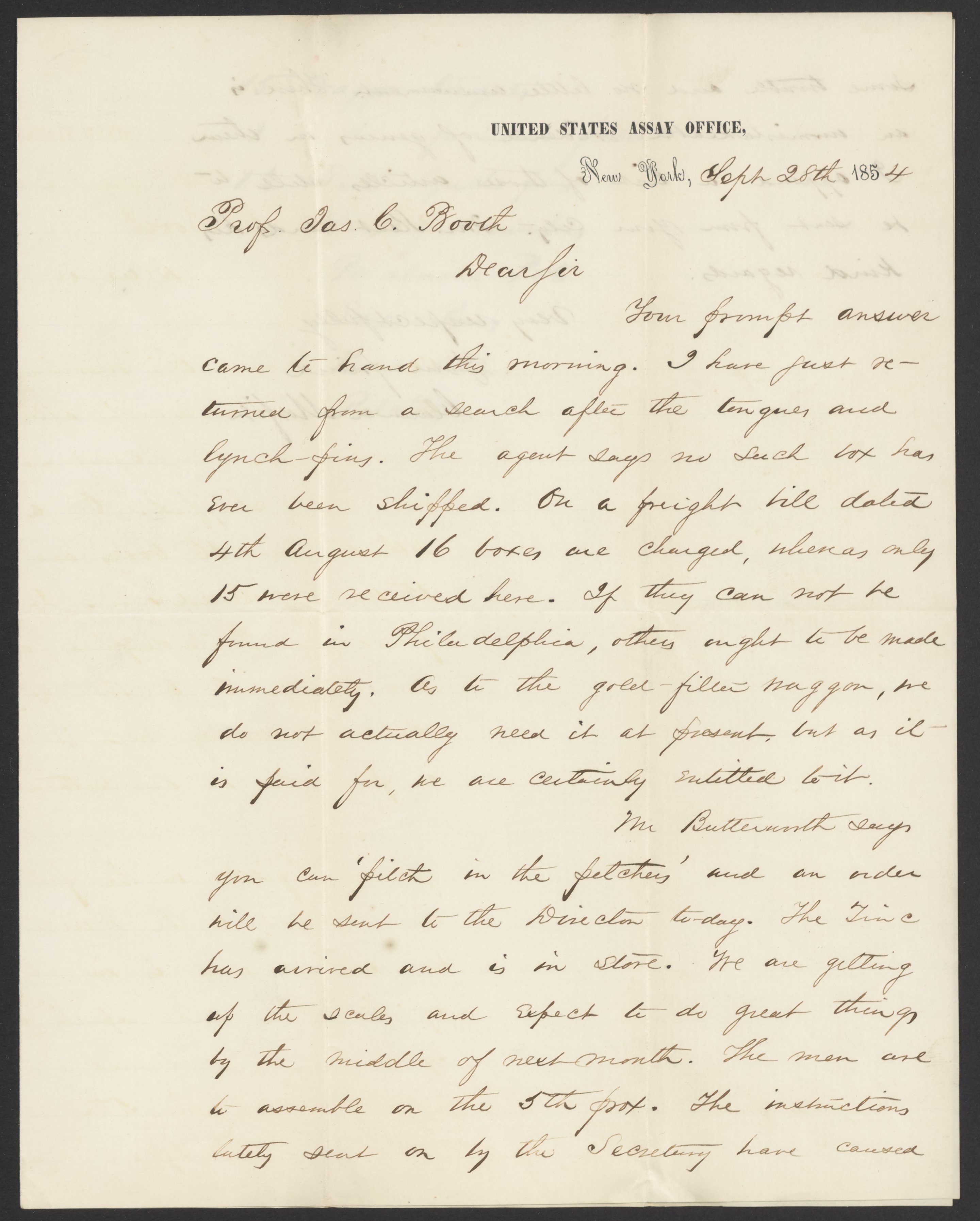 Letter from Clarence Morfit to James Curtis Booth, September 28, 1854
