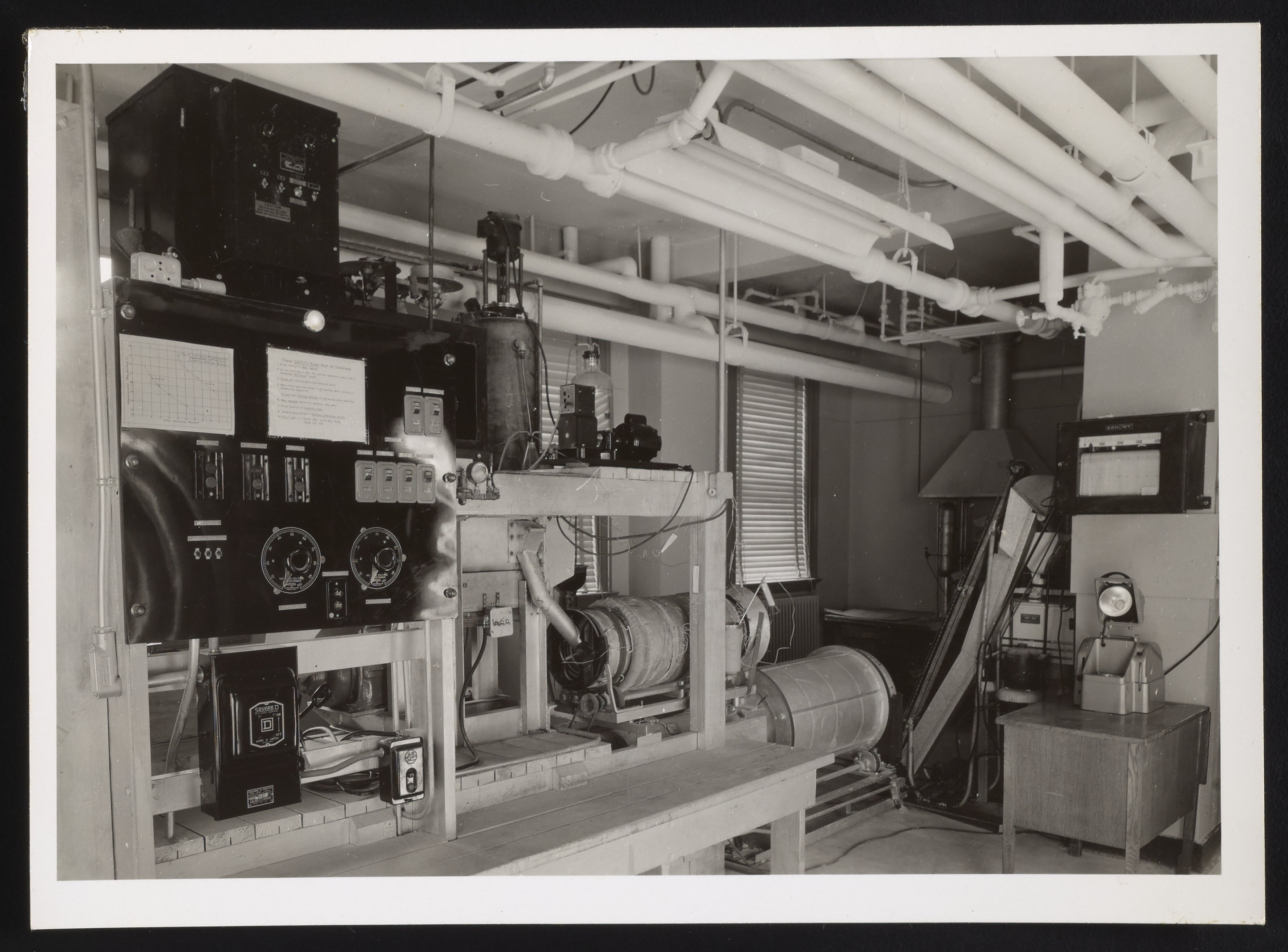 “Small-Scale Continuous Granulation Equipment,” circa 1953. Travis P. Hignett Collection of Fixed Nitrogen Research Laboratory Photographs, Box 4. Science History Institute. Philadelphia. https://digital.sciencehistory.org/works/6969z078d.