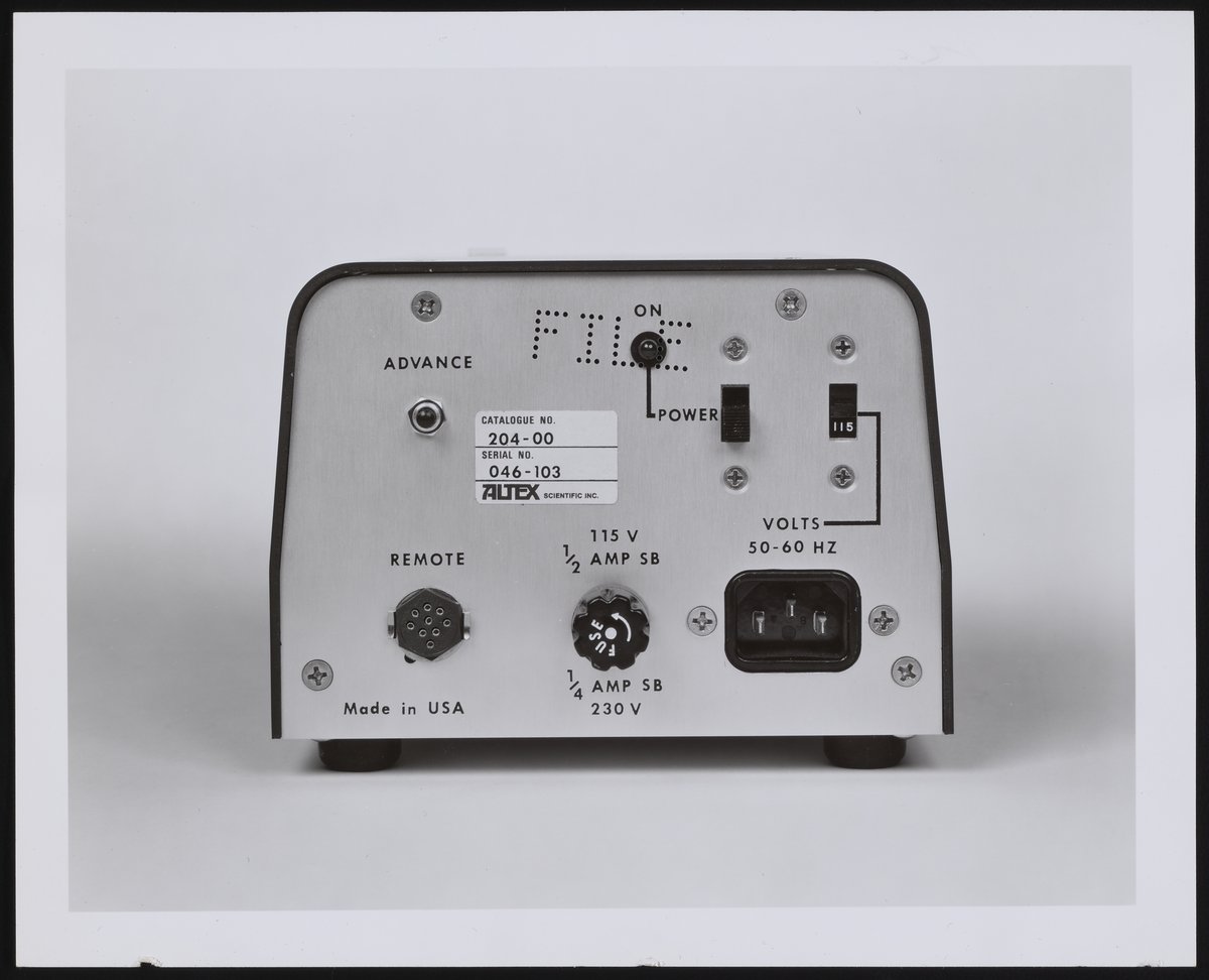 Herrington-Olson Photography. “Altex Rotary Injection Valve Unit,” circa 1979. Beckman Historical Collection, Box 83. Science History Institute. Philadelphia. https://digital.sciencehistory.org/works/6d56zw76x.