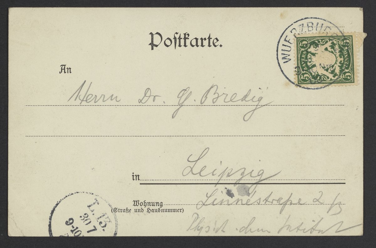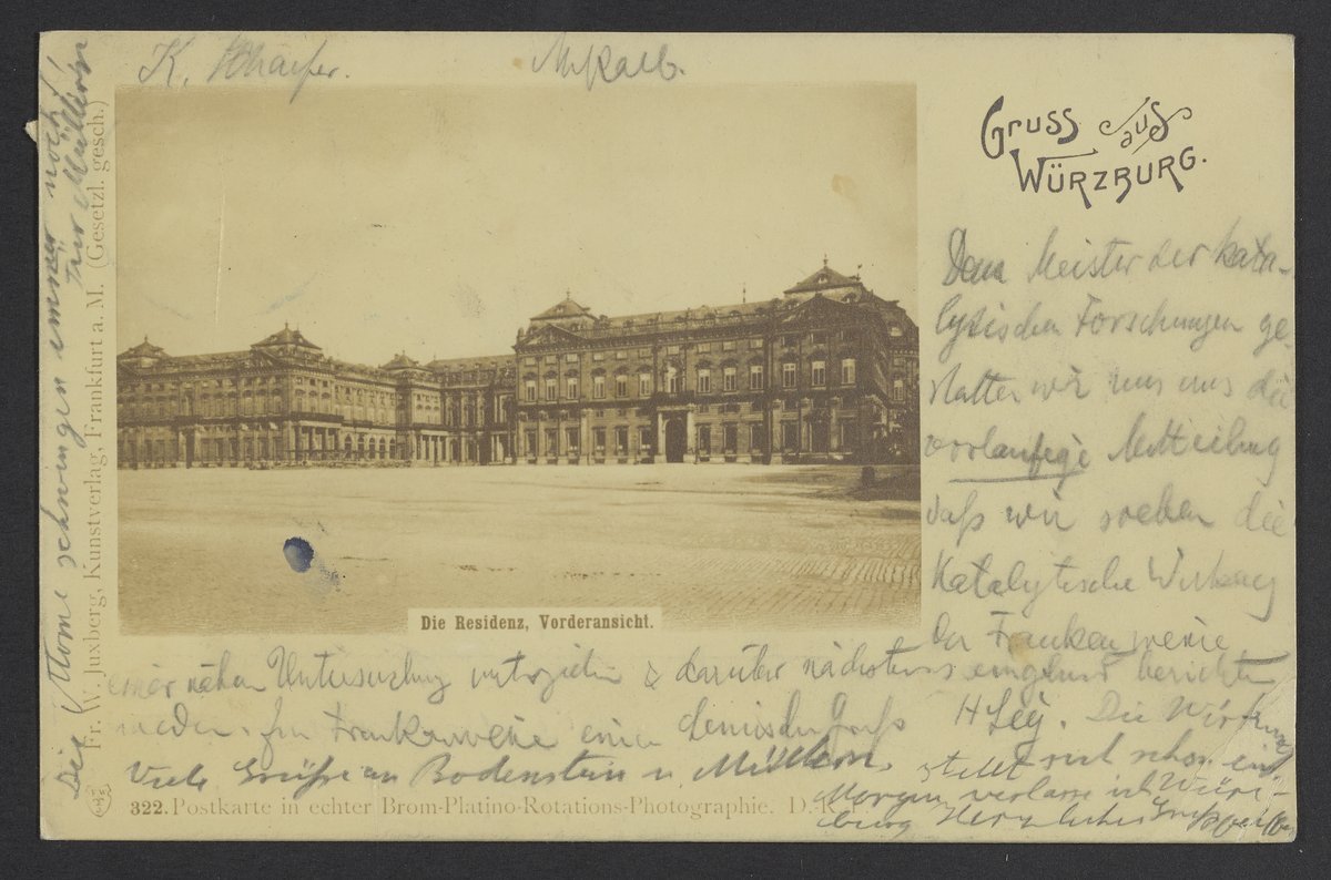 Small JPG1200 x 794px — 153 KBLarge JPG2880 x 1905px — 741 KBFull-sized JPG3546 x 2346px — 1.0 MBOriginal fileTIFF — 3546 x 2346px — 23.8 MBPostcard of the front view of the Würzburg Residence sent to Georg Bredig (1868-1944).