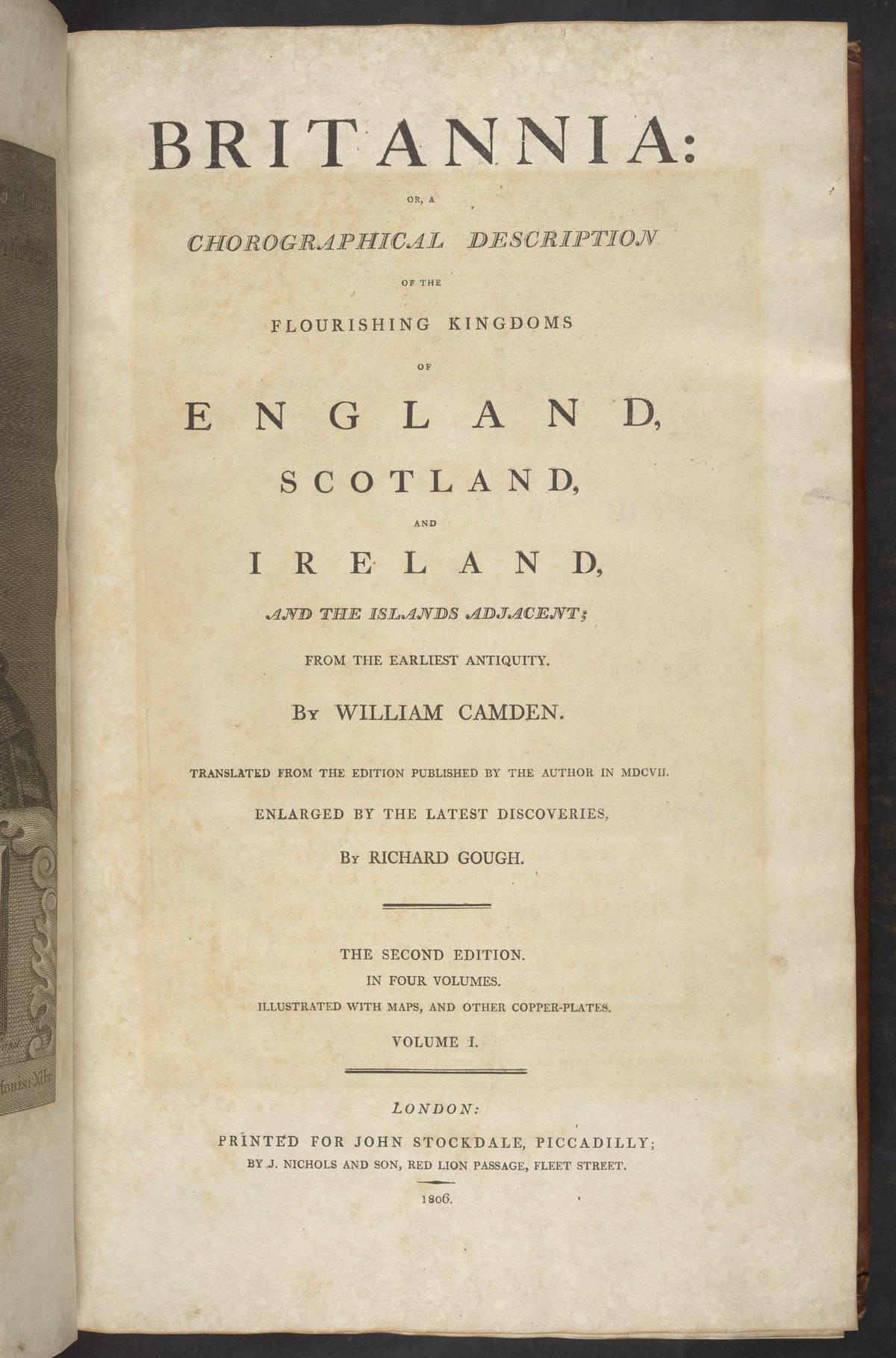 Camden, William, Richard Gough, and John Nichols. Britannia: or, a Chorographical Description of the Flourishing Kingdoms of England, Scotland, and Ireland, and the Islands Adjacent, Vol. 1. London, England: John Stockdale, 1806. https://digital.sciencehistory.org/works/6g35qcc.