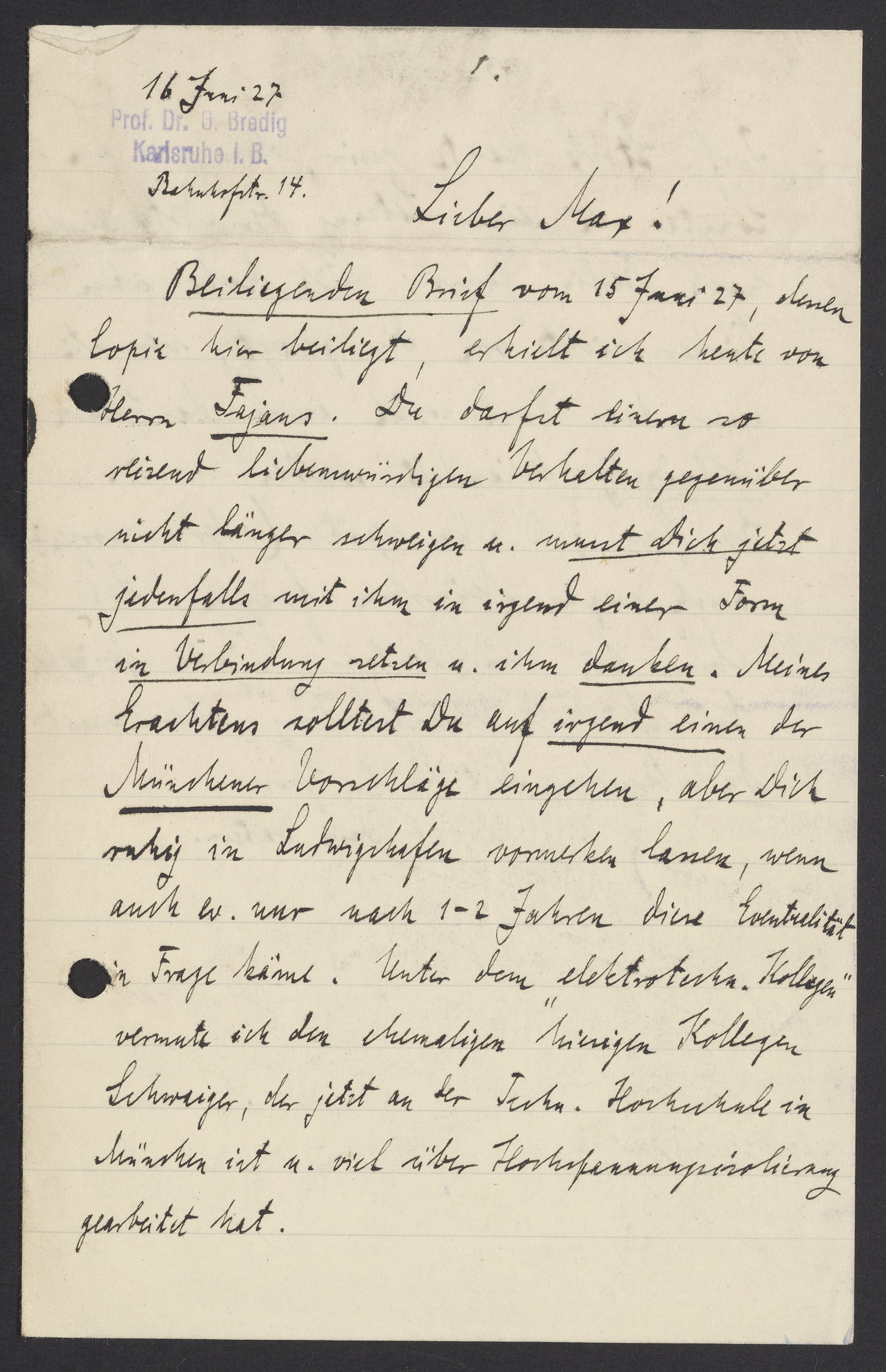 Letter from Georg Bredig to Max Bredig, June 16, 1927