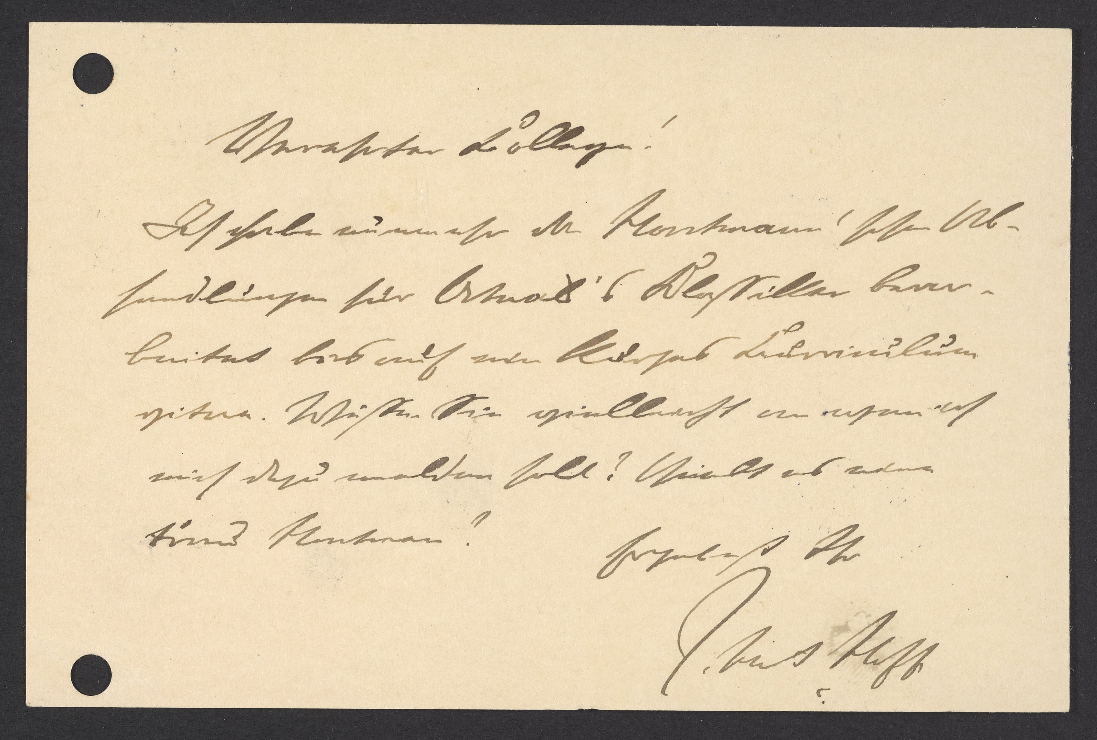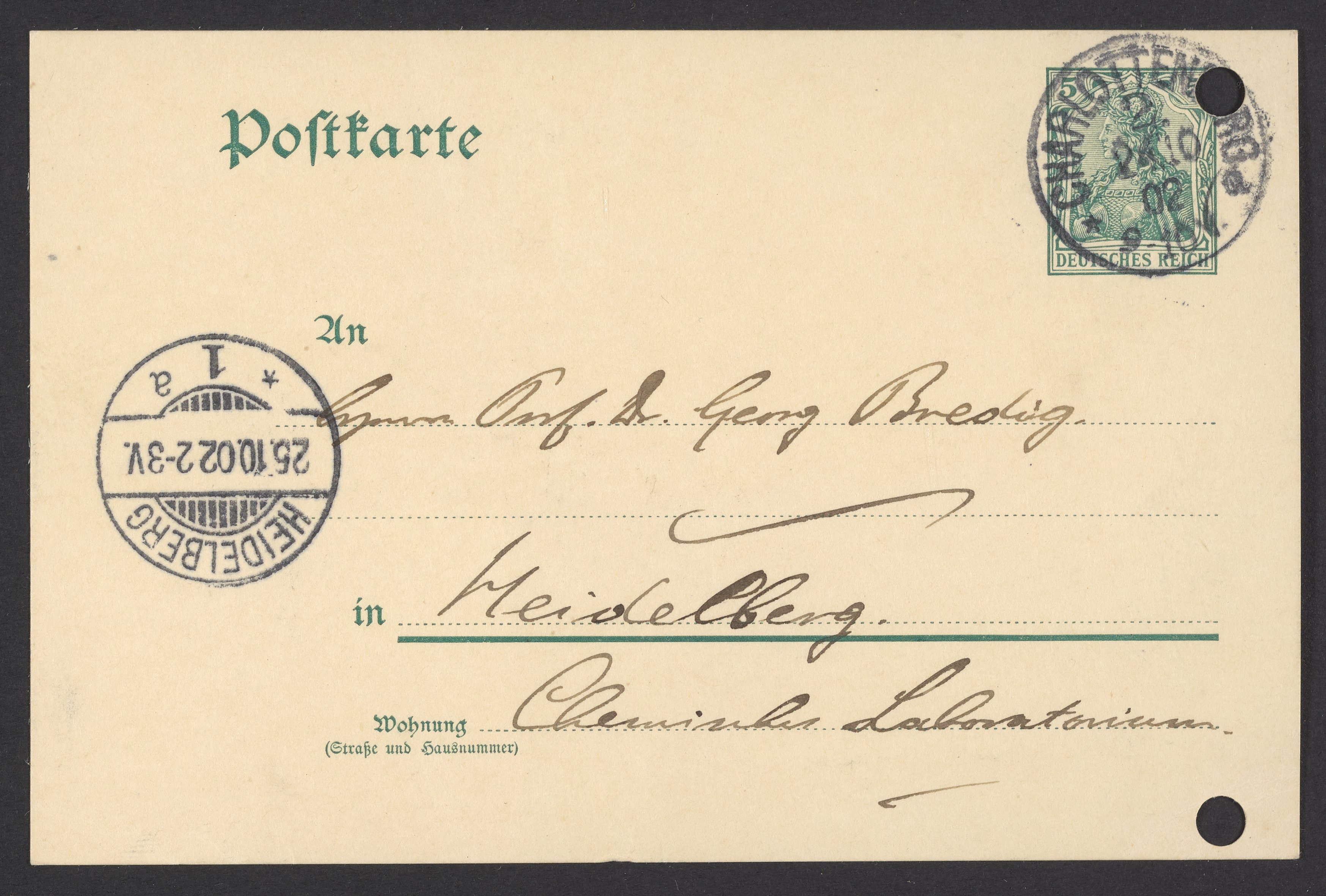 Postcard from Jacobus H. van 't Hoff to Georg Bredig, October 1902