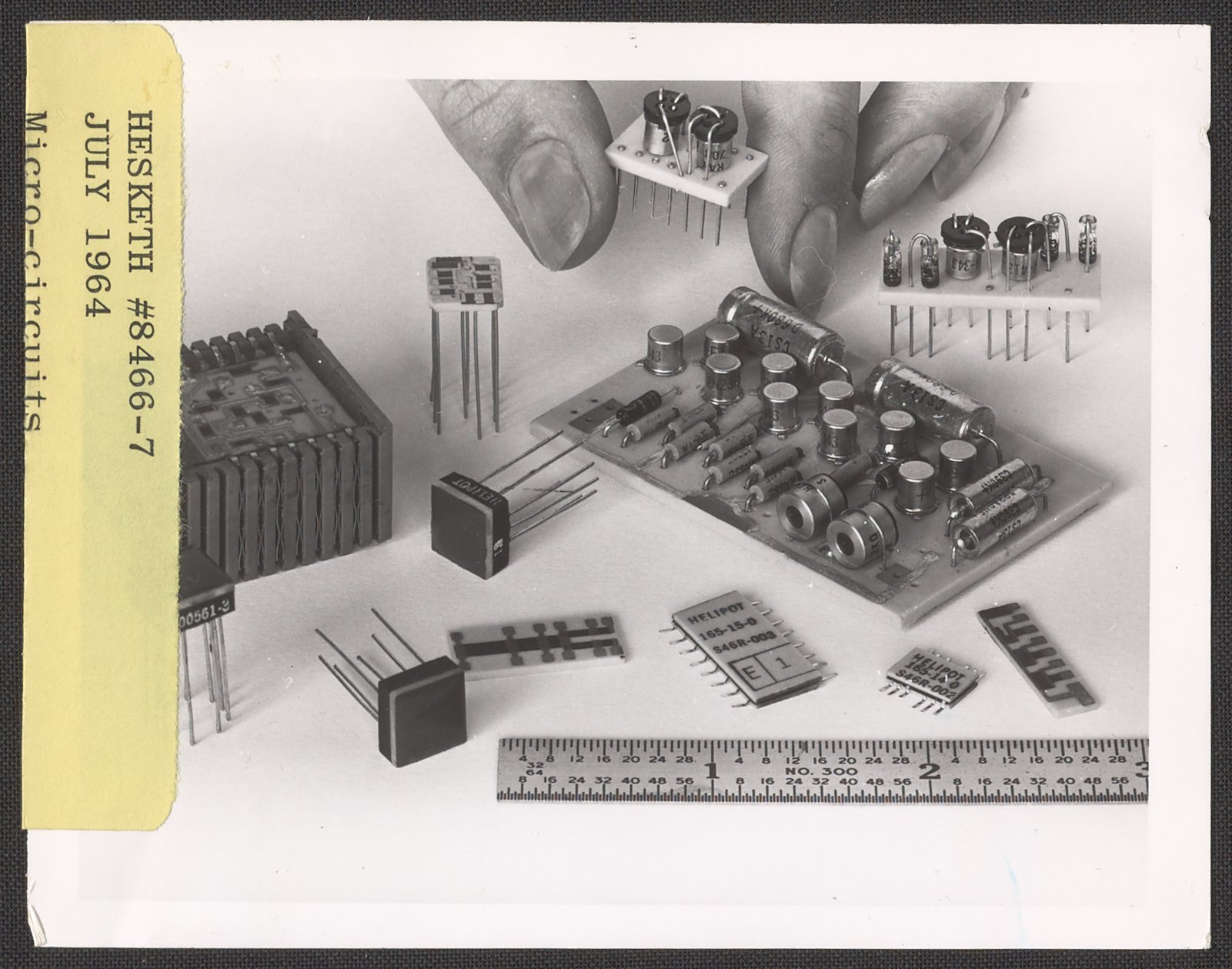 Hesketh, Dean D. “Assortment of Unidentified Helipot Microcircuits,” 1950–1969. Beckman Historical Collection, Box 85. Science History Institute. Philadelphia. https://digital.sciencehistory.org/works/6m311p64r.