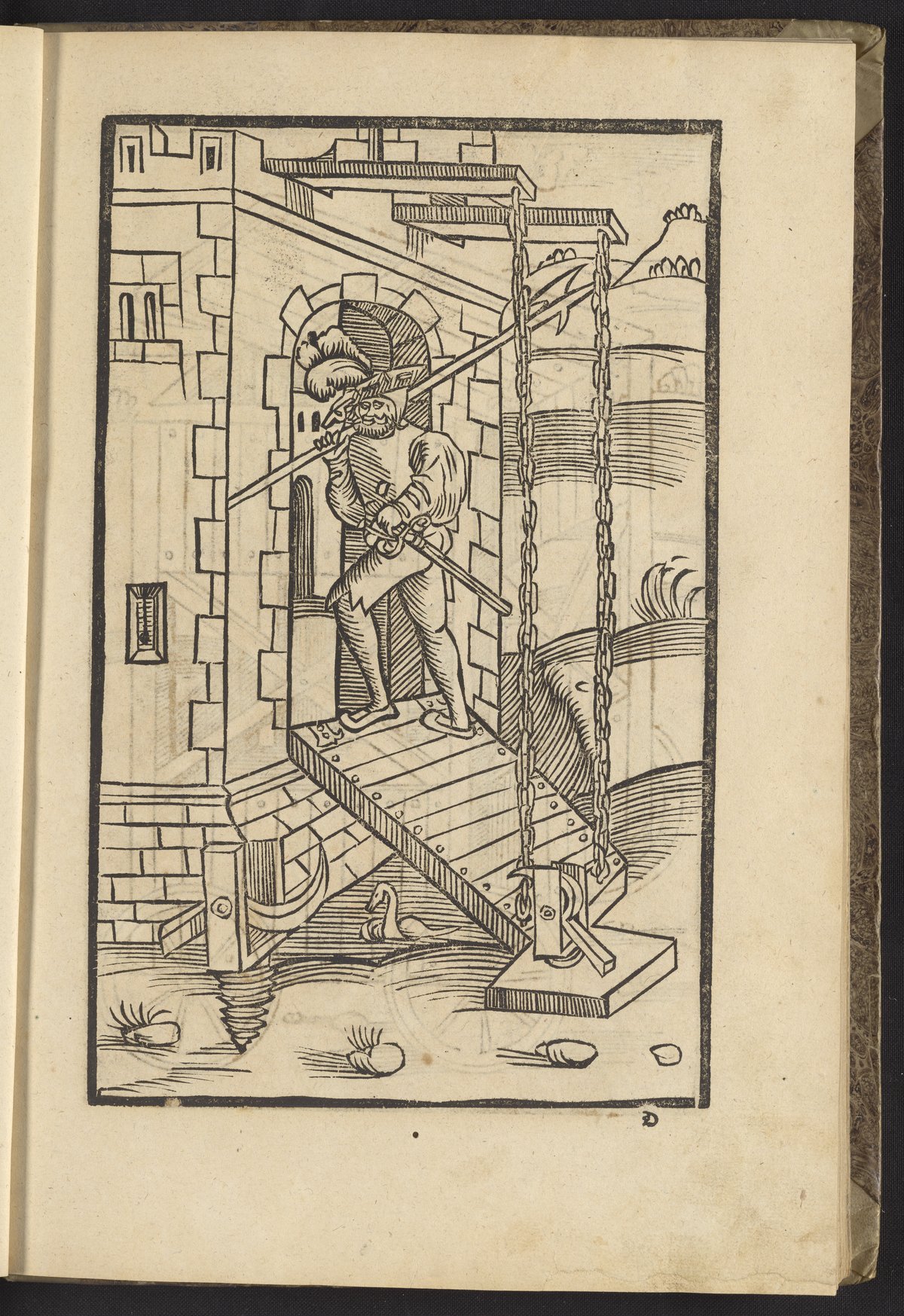 Vegetius Renatus, Flavius. “Drawbridge.” In Vier Bücher Der Ritterschafft. Augsburg, Germany: Heinrich Stayner, 1529. https://digital.sciencehistory.org/works/6q182k31q.