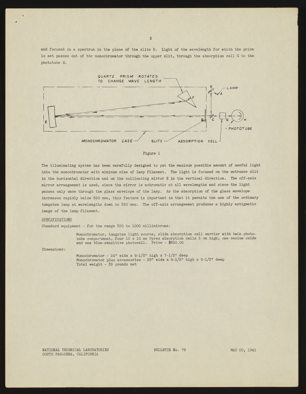 Beckman Instruments, Inc. “The Beckman Photoelectric Spectrophotometer,” May 20, 1941. Beckman Historical Collection, Box 17, Folder 17. Science History Institute. Philadelphia. https://digital.sciencehistory.org/works/6q182k88v.