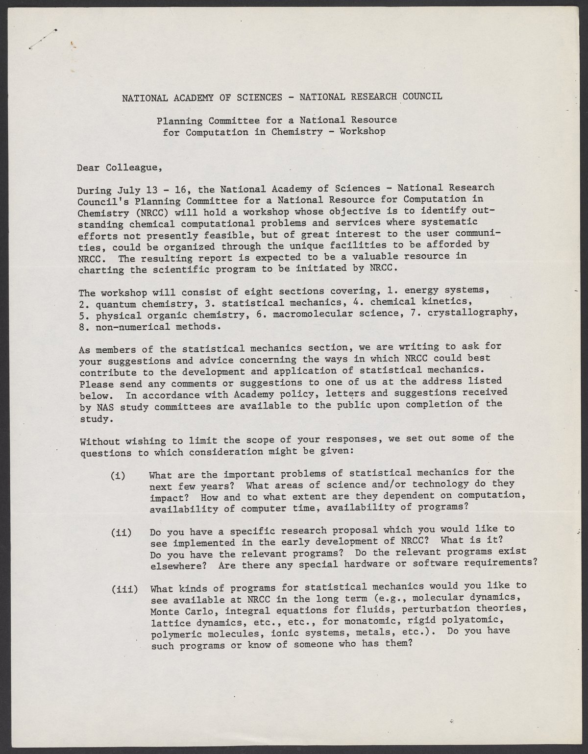 Lawrence Berkeley Laboratory. “Workshop on a National Resource for Computation in Chemistry,” 1976. William A. Lester, Jr. Papers, Box 3, Folder 12. Science History Institute. Philadelphia. https://digital.sciencehistory.org/works/6qnstfz.