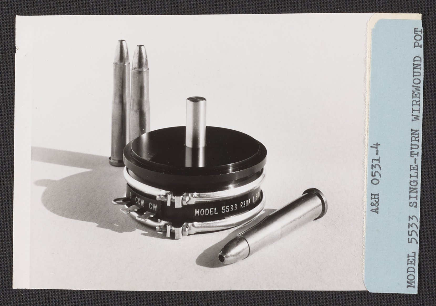 Armstrong & Hess. “Helipot Model 5533 Single-Turn Wirewound Potentiometer with Cartridges,” 1950–1969. Beckman Historical Collection, Box 86. Science History Institute. Philadelphia. https://digital.sciencehistory.org/works/6w924c27k.