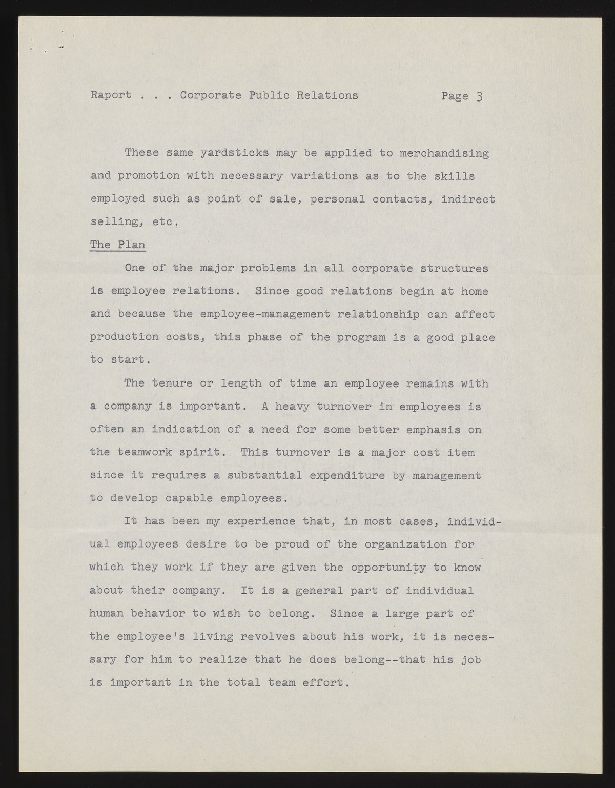 The document lays out the purpose, techniques, and goals of a corporate public relations program.