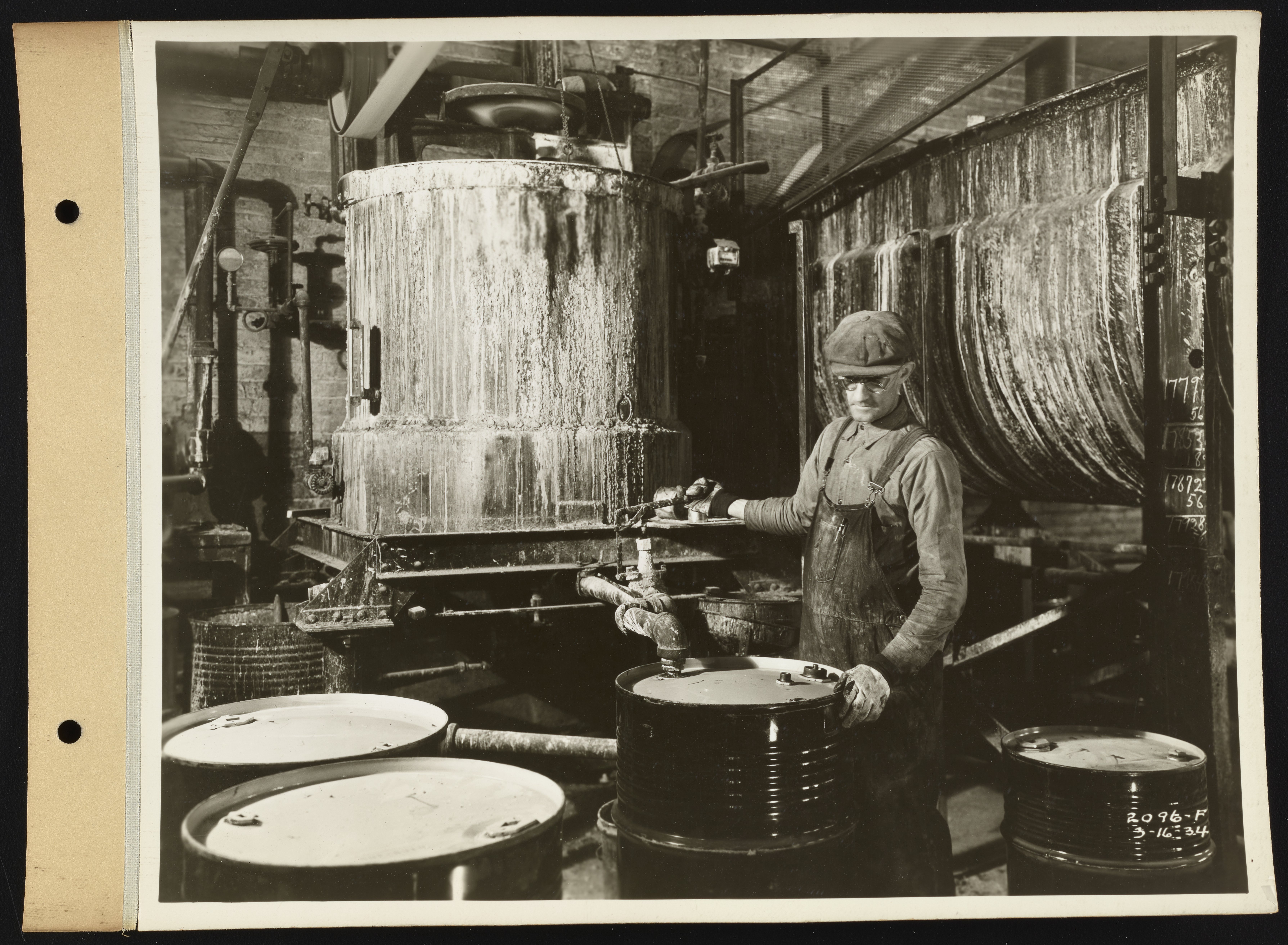 Dearborn Chemical Company. “Barrel Filling at Dearborn Manufacturing Facility,” March 16, 1934. BetzDearborn, Incorporated Records, Box 17, Folder 14. Science History Institute. Philadelphia. https://digital.sciencehistory.org/works/765372430.