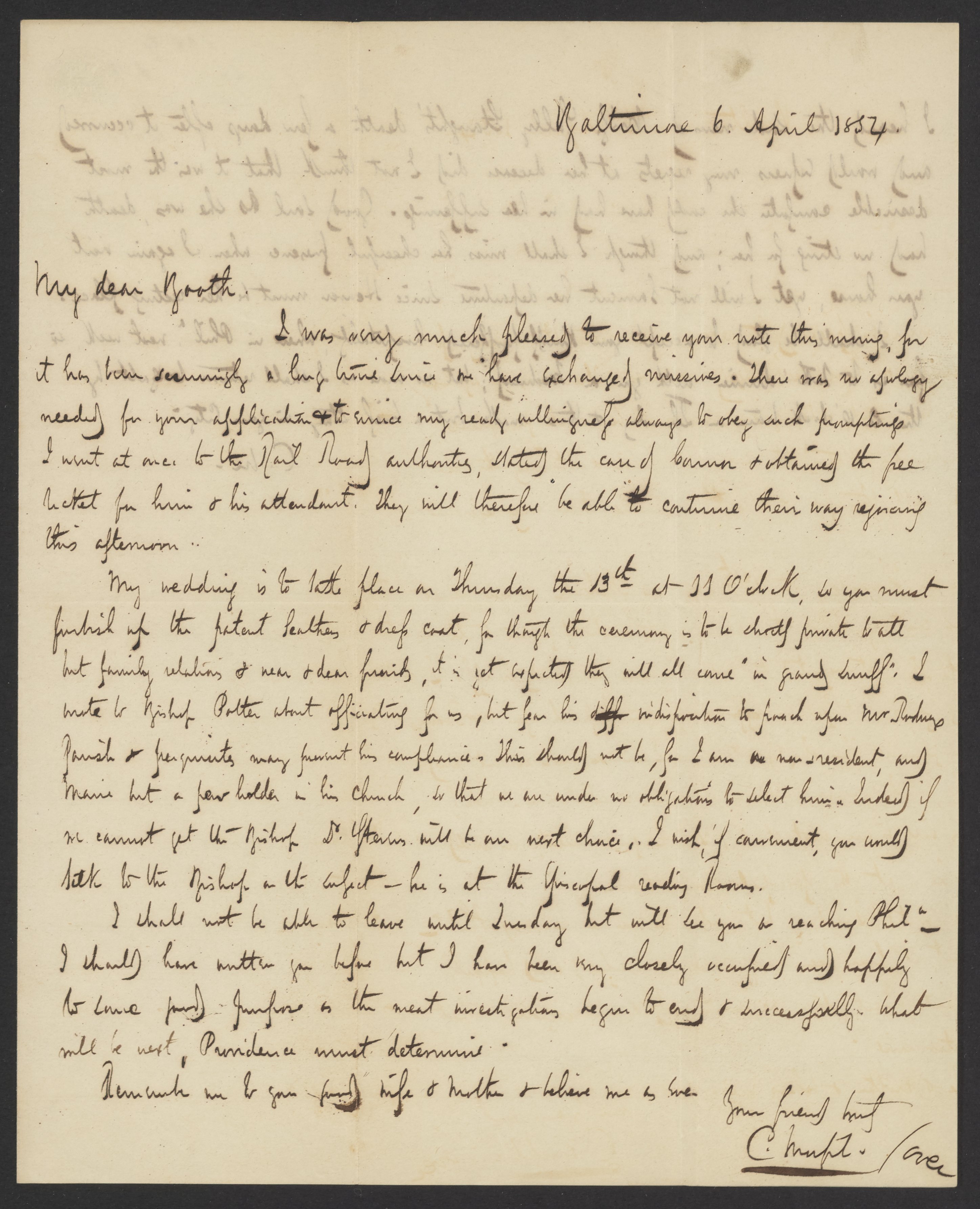 Small JPG1200 x 1480px — 274 KBLarge JPG2880 x 3552px — 1.1 MBFull-sized JPG2895 x 3571px — 1.1 MBOriginal fileTIFF — 2895 x 3571px — 29.6 MBCampbell Morfit (1820-1897), a distinguished chemist and co-editor with James Curtis Booth (1810-1888) of the Encyclopedia of Chemistry (1850), writes to Booth concerning his upcoming wedding.