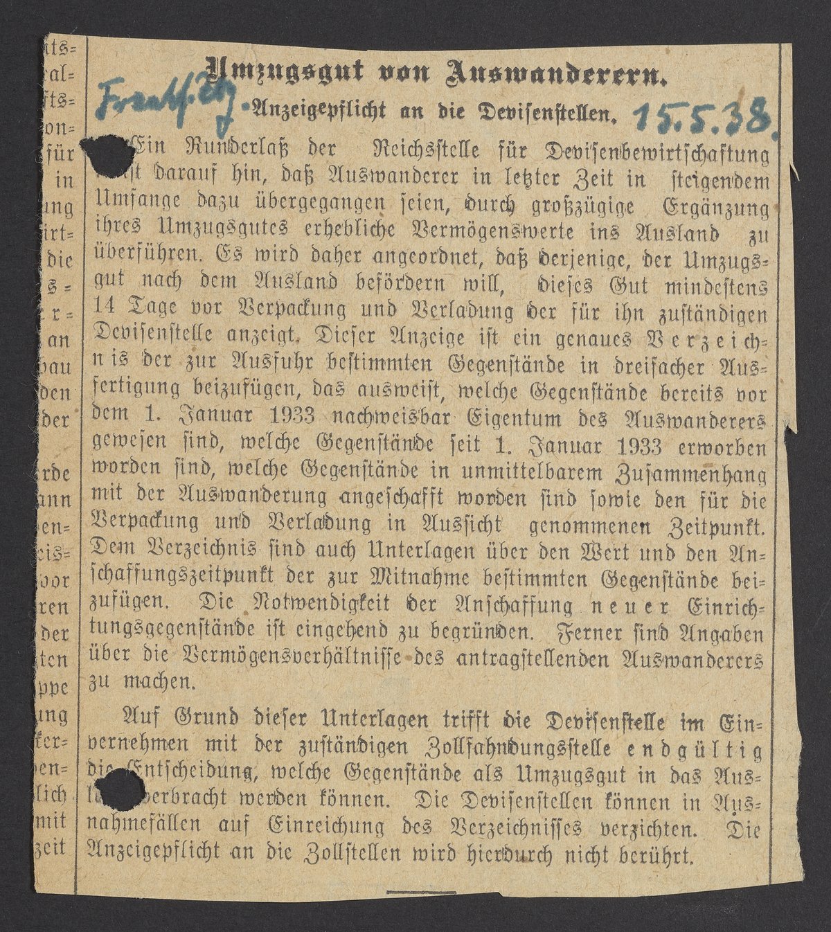 “Umzugsgut Von Auswanderern,” May 15, 1938. Papers of Georg and Max Bredig, Box 4, Folder 13. Science History Institute. Philadelphia. https://digital.sciencehistory.org/works/78fvou3.