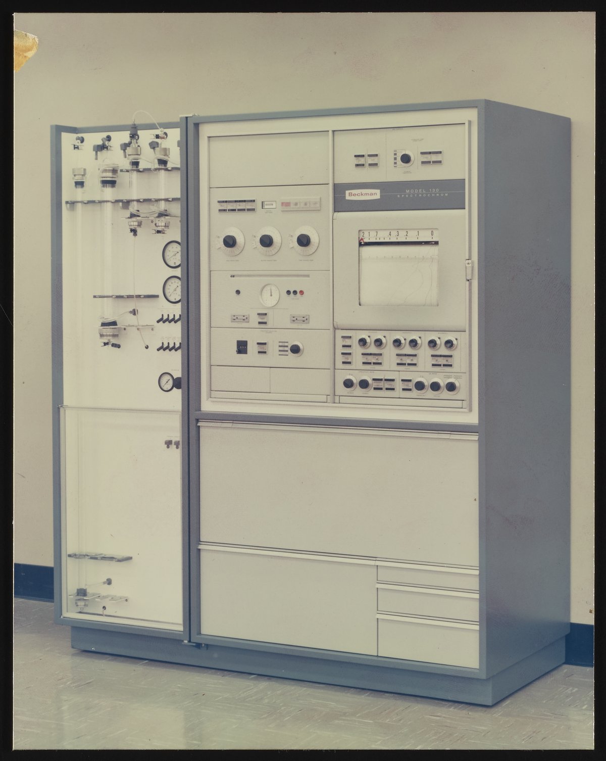 “Spinco Model 130 Spectrochrom Analyzer,” n.d. Beckman Historical Collection, Box 59, Folder 108. Science History Institute. Philadelphia. https://digital.sciencehistory.org/works/79407x24n.