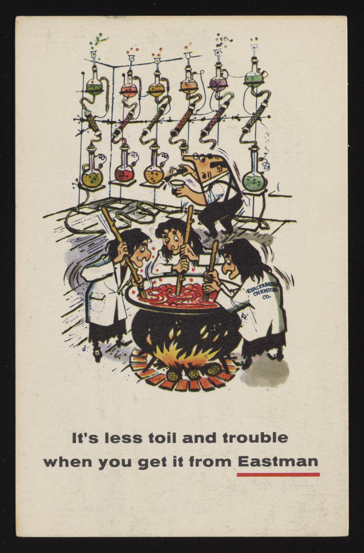 Eastman Kodak Company. “It's Less Toil and Trouble When You Get It from Eastman.” Rochester, New York, 1950–1959. John C. Sheehan Collection of Chemical Advertisements, Box 1. Science History Institute. Philadelphia. https://digital.sciencehistory.org/works/7bbxu1w.