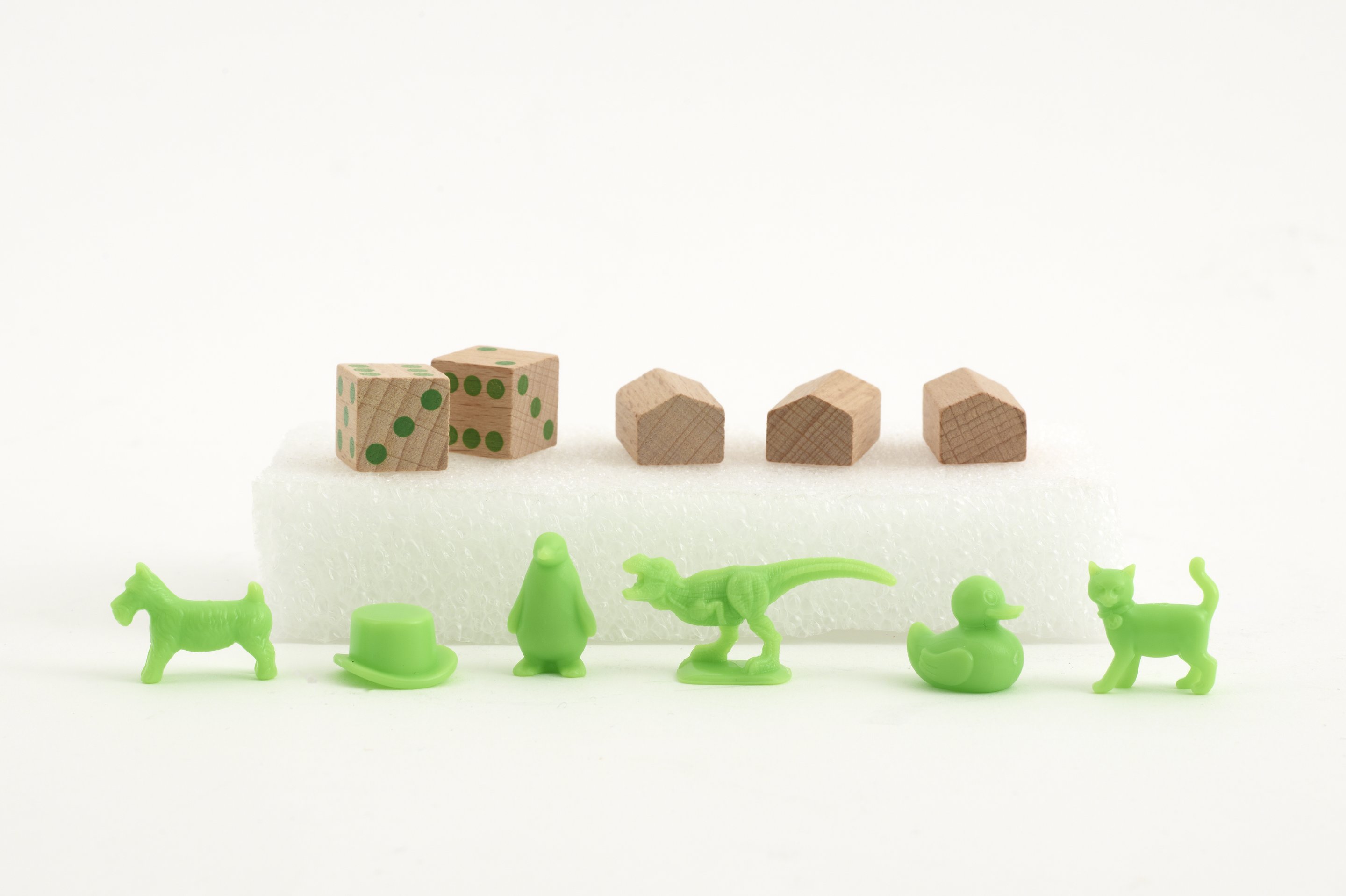 In this edition of the classic board game, Monopoly, players buy, sell, and trade properties, and invest in making them eco-friendly. Gameplay pieces are reportedly made from renewable sources: the greenhouses and dice are made of FSC-certified wood; tokens are made from plastic derived from sugarcane, a renewable raw material; the package, gameboard, game guide, money, cards, and money tray are made from recycled paper.