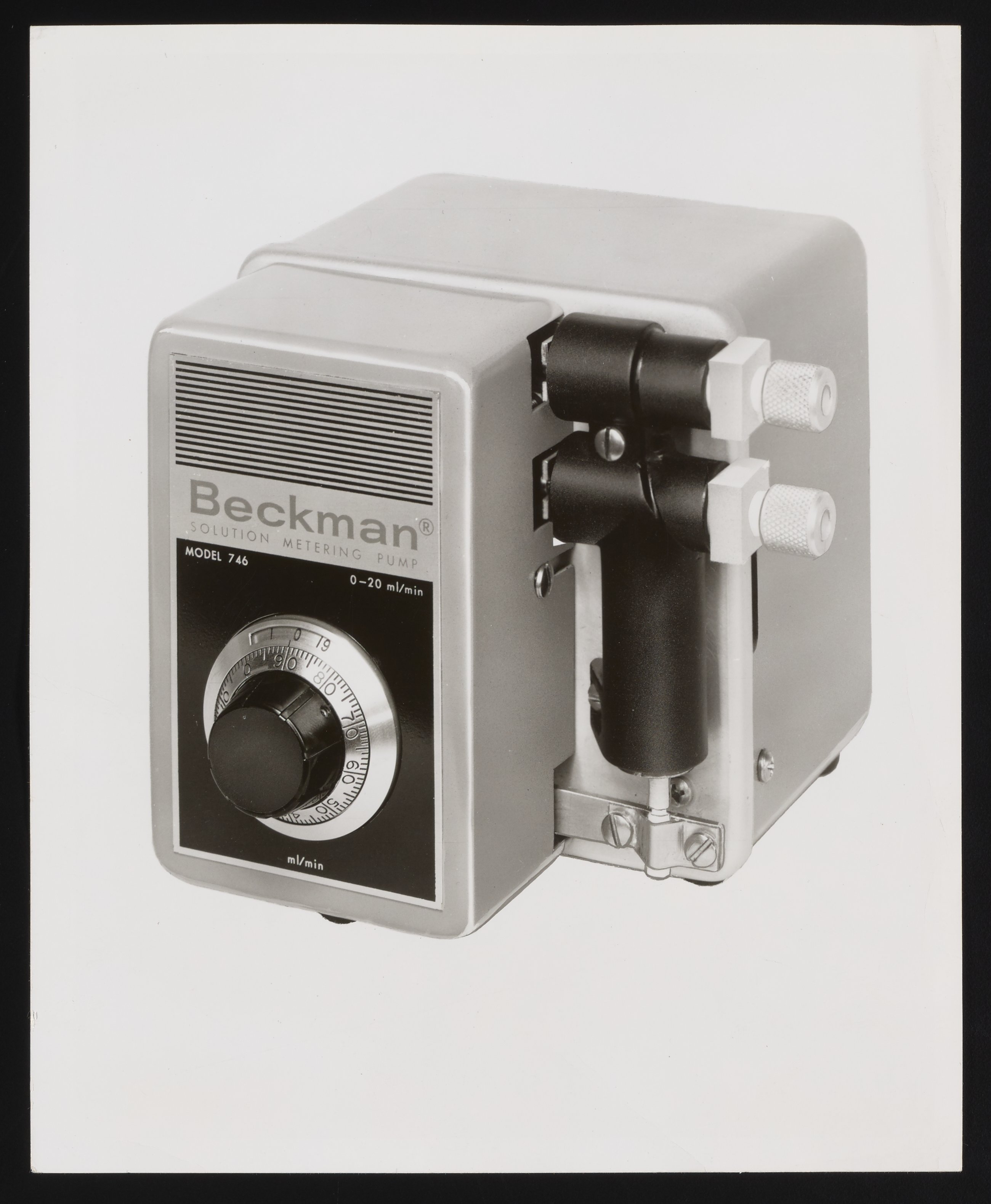 “Beckman Model 746 Solution Metering Pump,” 1961. Beckman Historical Collection, Box 81. Science History Institute. Philadelphia. https://digital.sciencehistory.org/works/7h149p96f.