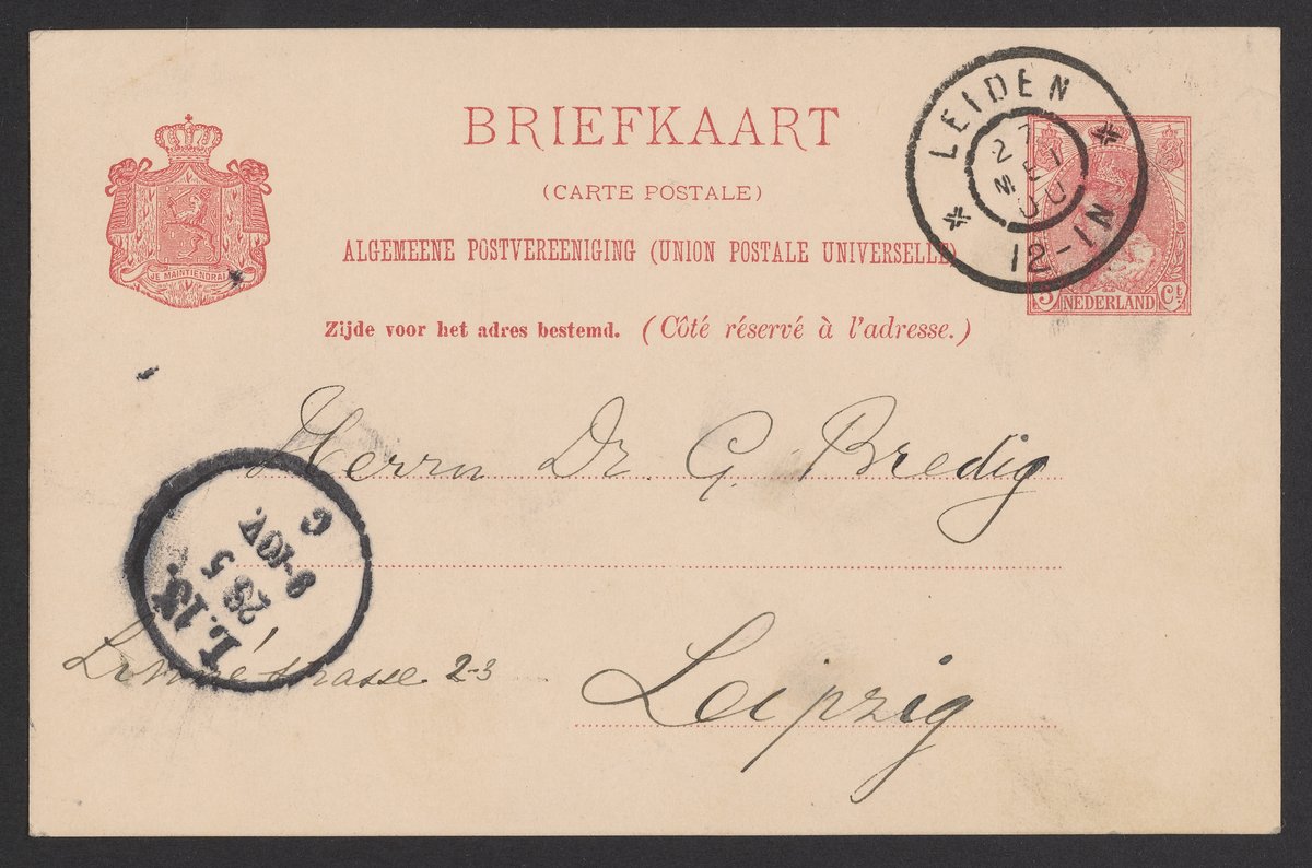 Postcard from Jacob Maarten van Bemmelen to Georg Bredig