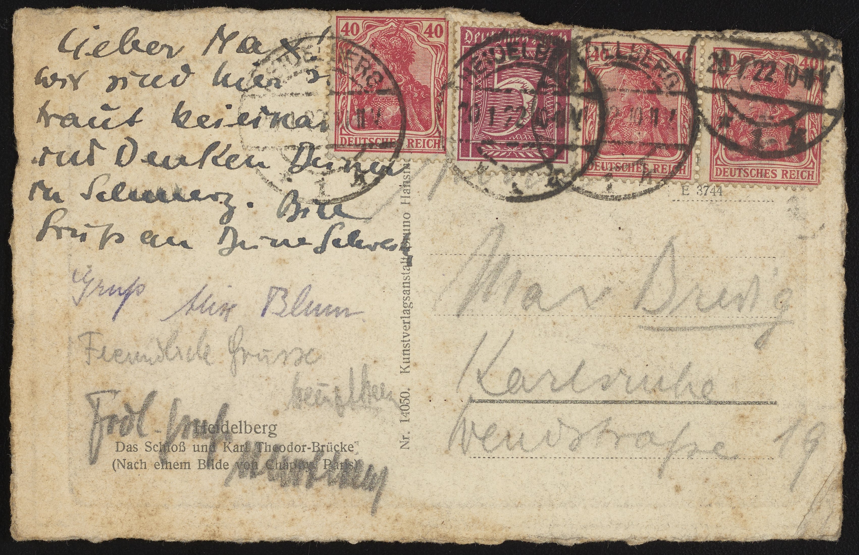1922 postcard of Heidelberg, Germany to Max Bredig