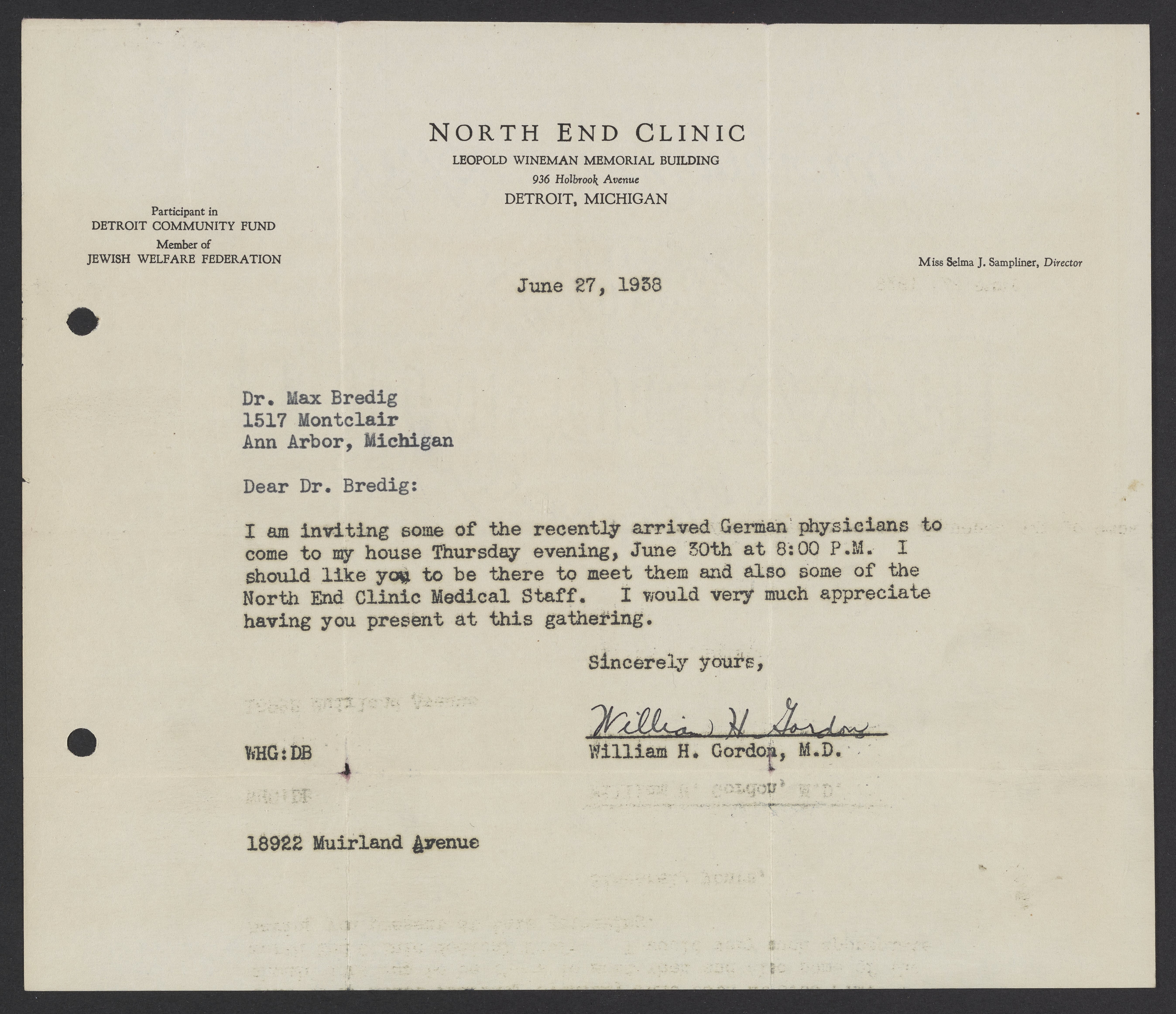 Letter from William H. Gordon to Max Bredig, June 27, 1938