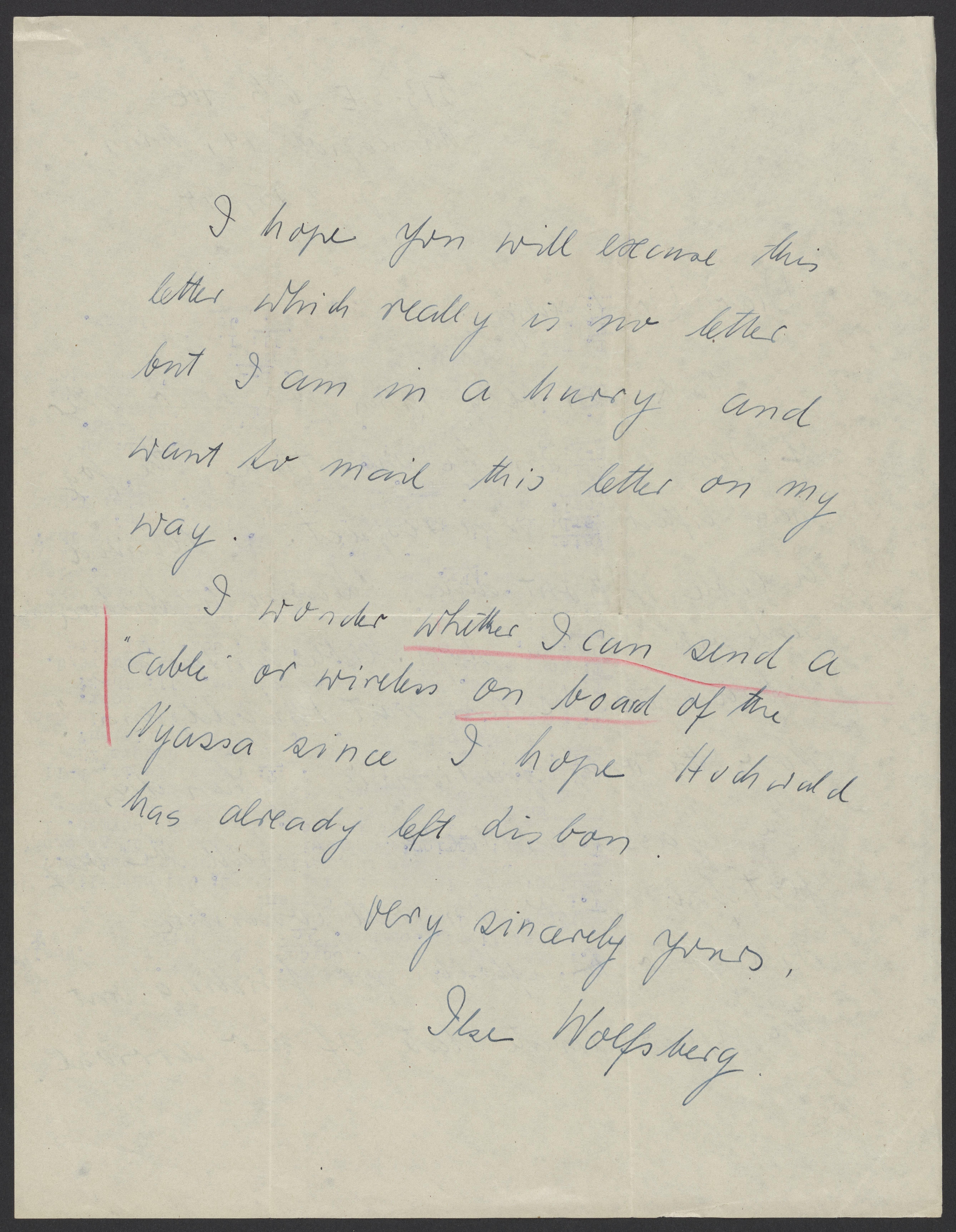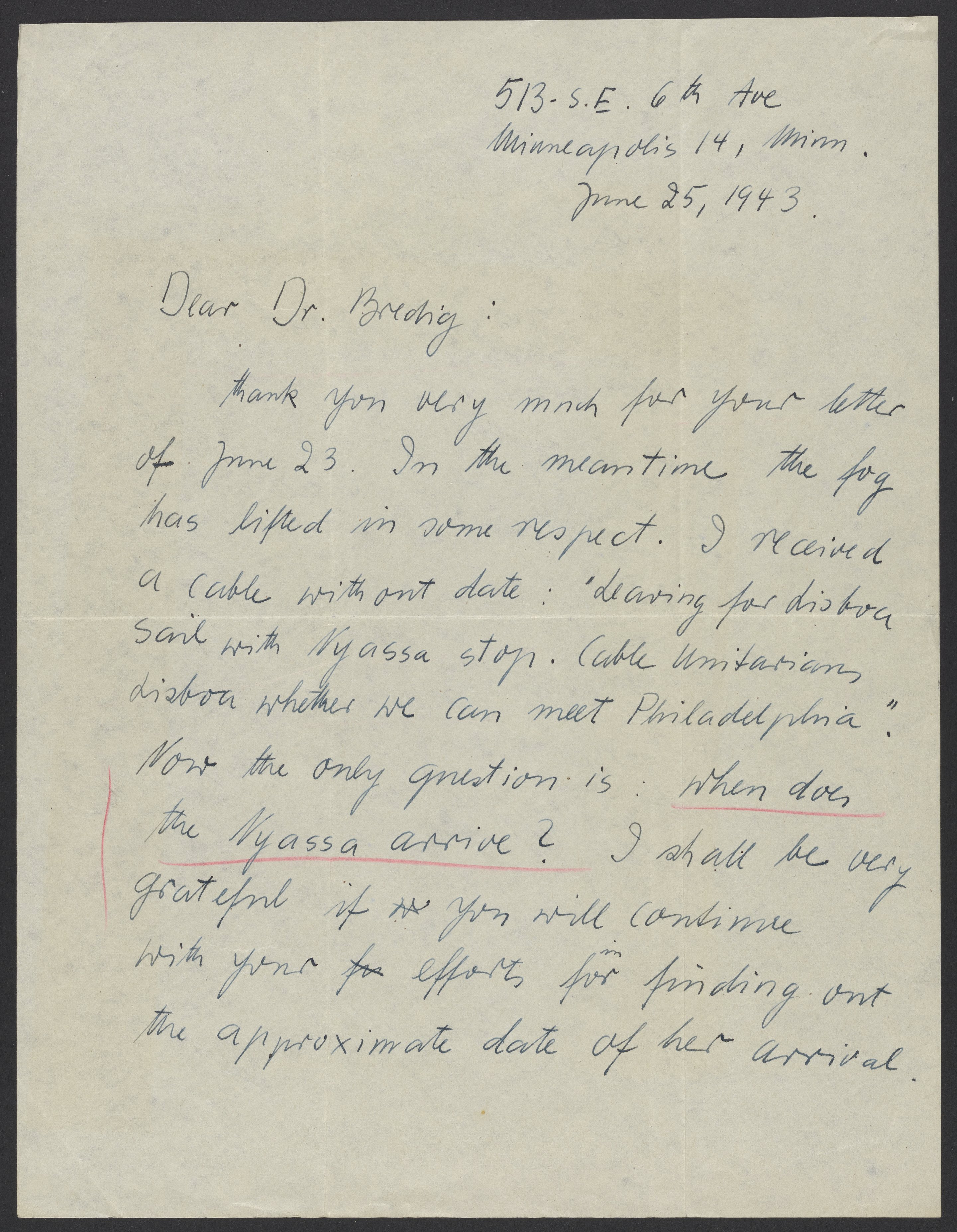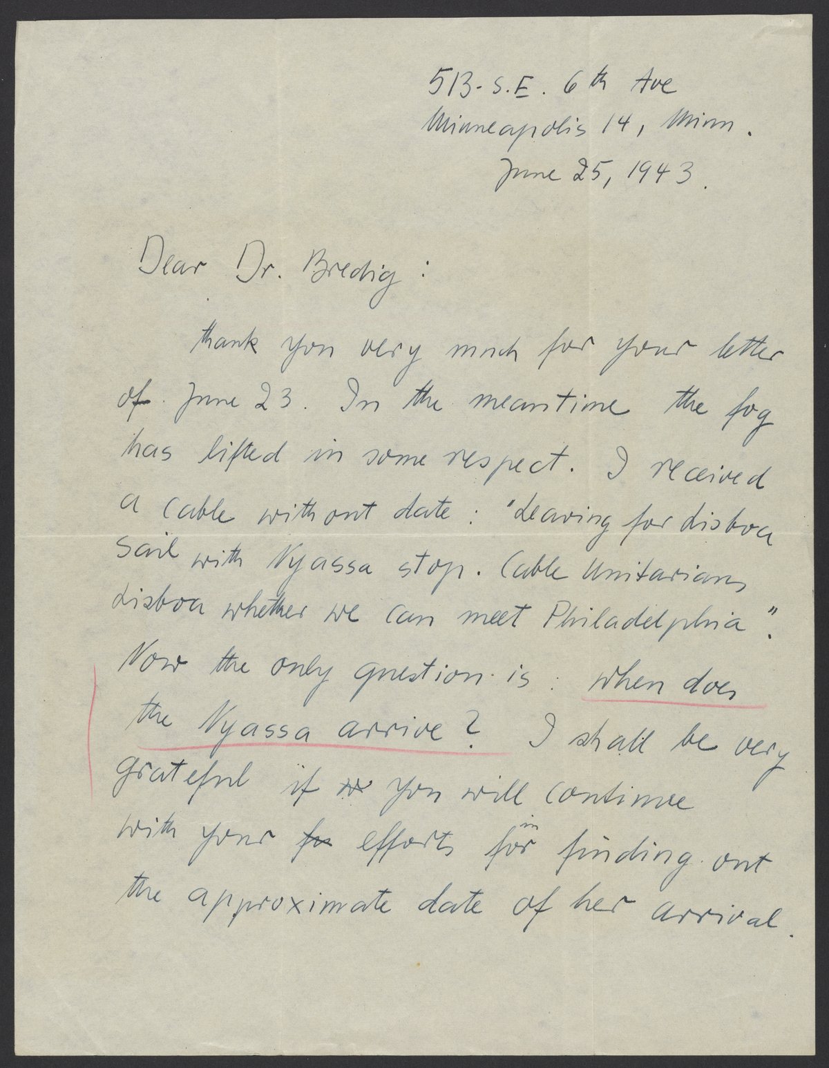 Letter from Ilse Wolfsberg to Max Bredig, June 25, 1943
