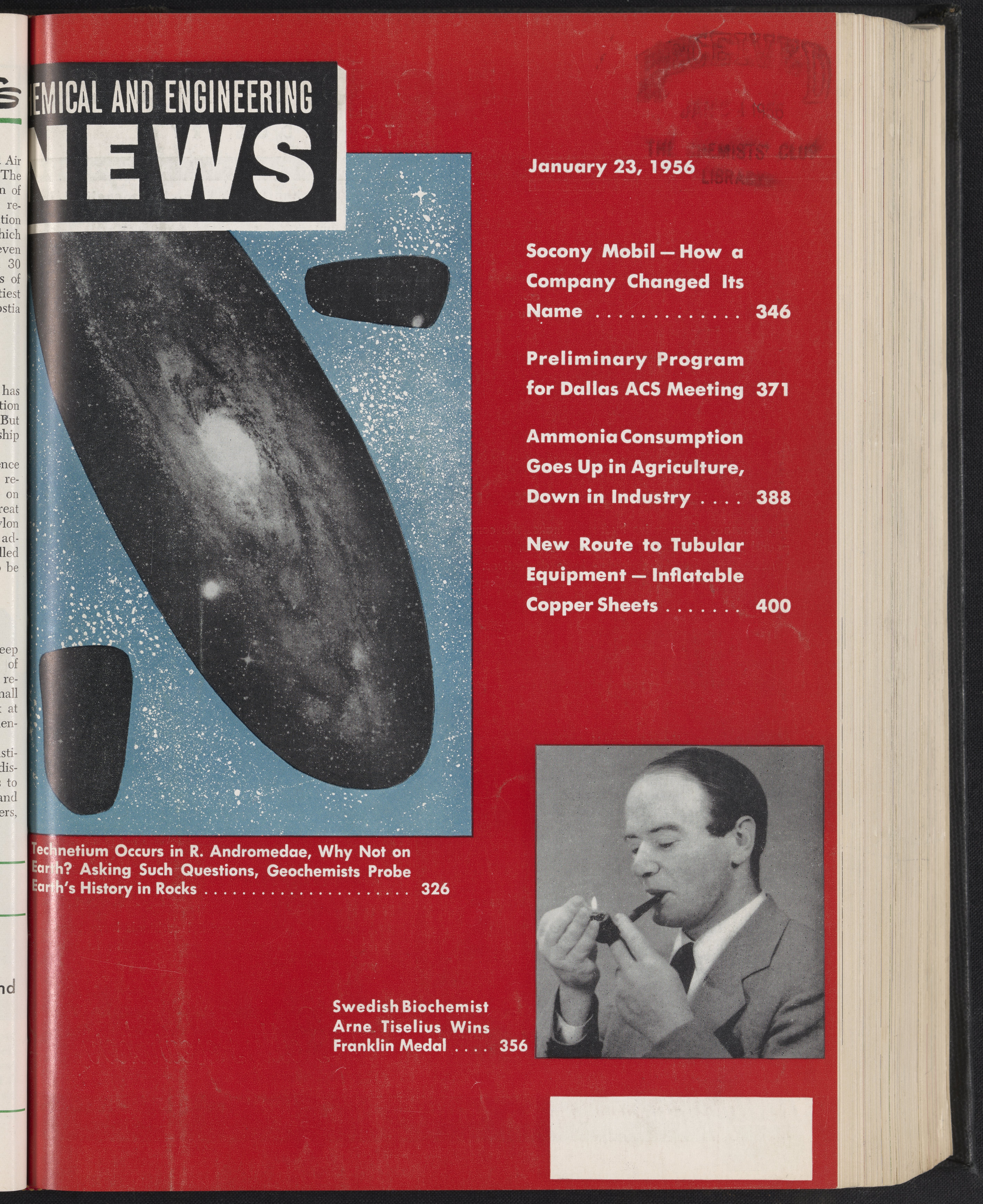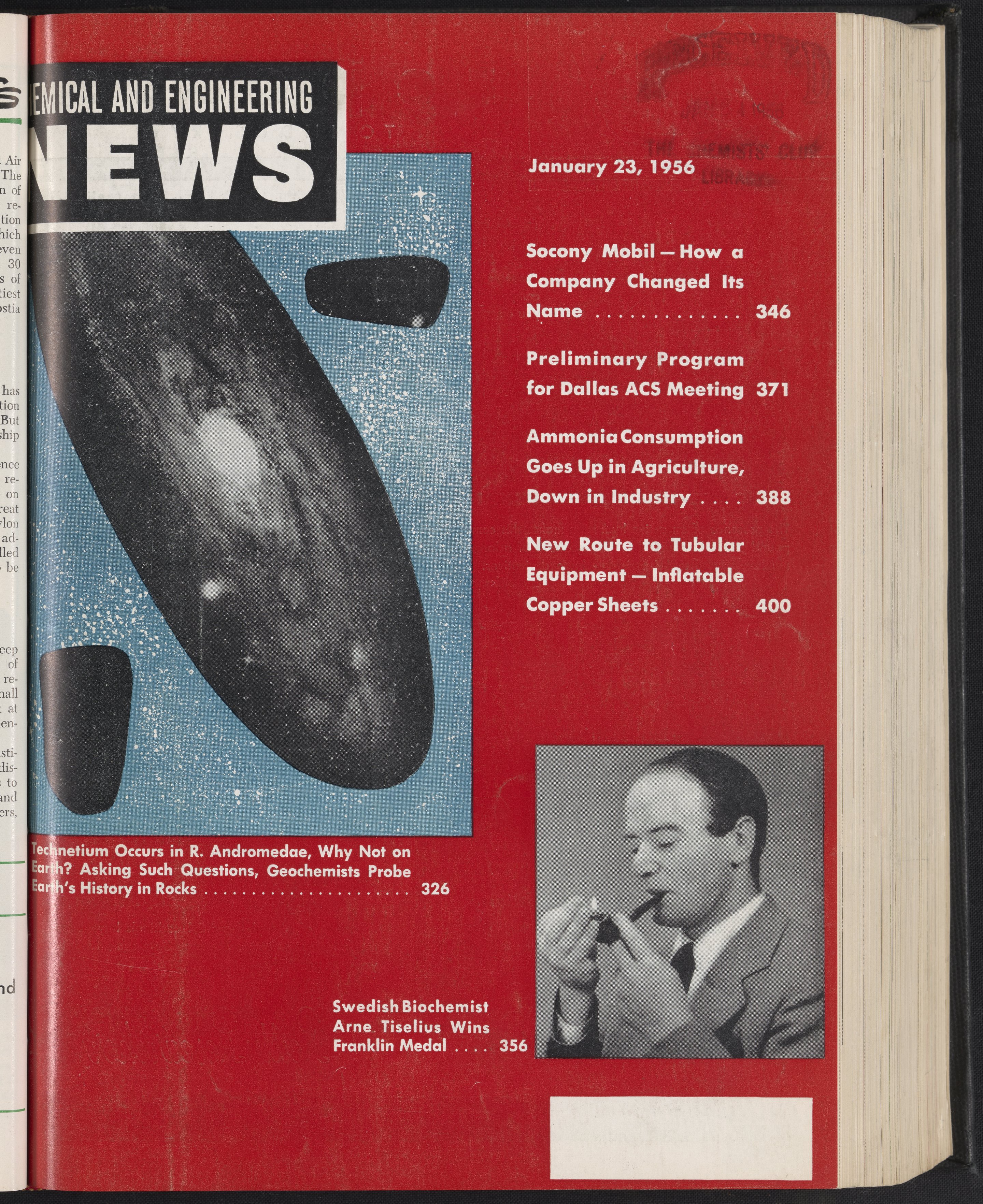 “Pages 374 and 375 of Chemical and Engineering News, Volume 34, Issue 4.” American Chemical Society, January 23, 1956. 5FL009E. Science History Institute. Philadelphia. https://digital.sciencehistory.org/works/7qi3xya.