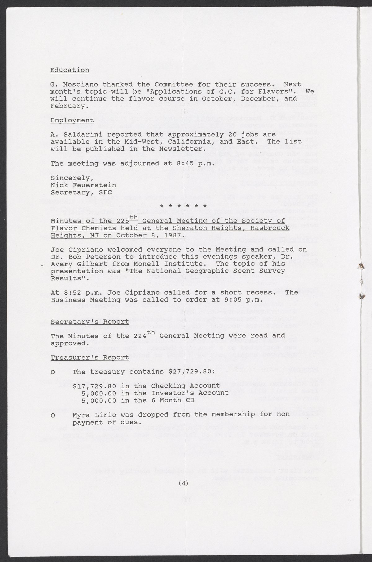 Society of Flavor Chemists newsletter, March 1988