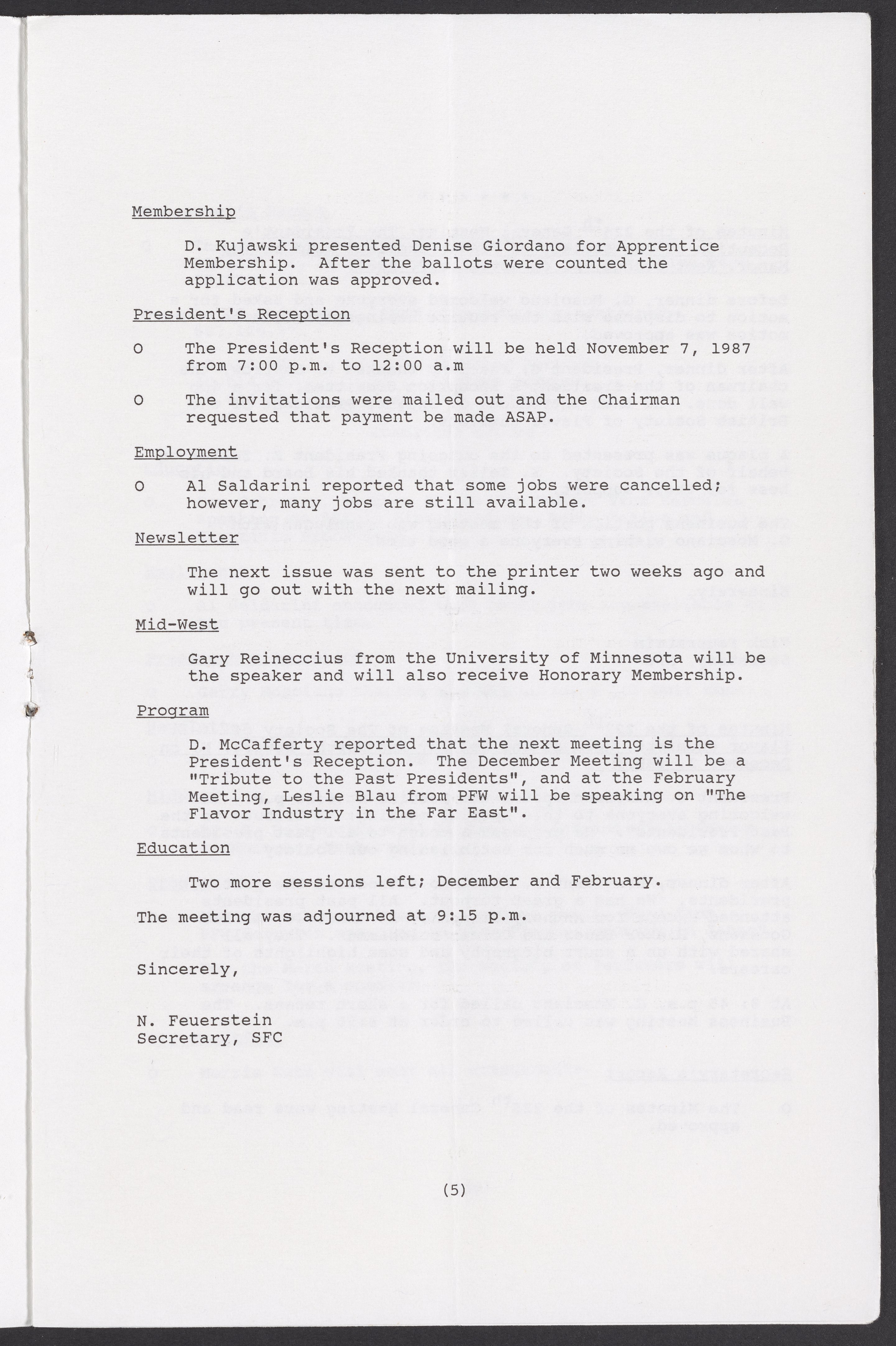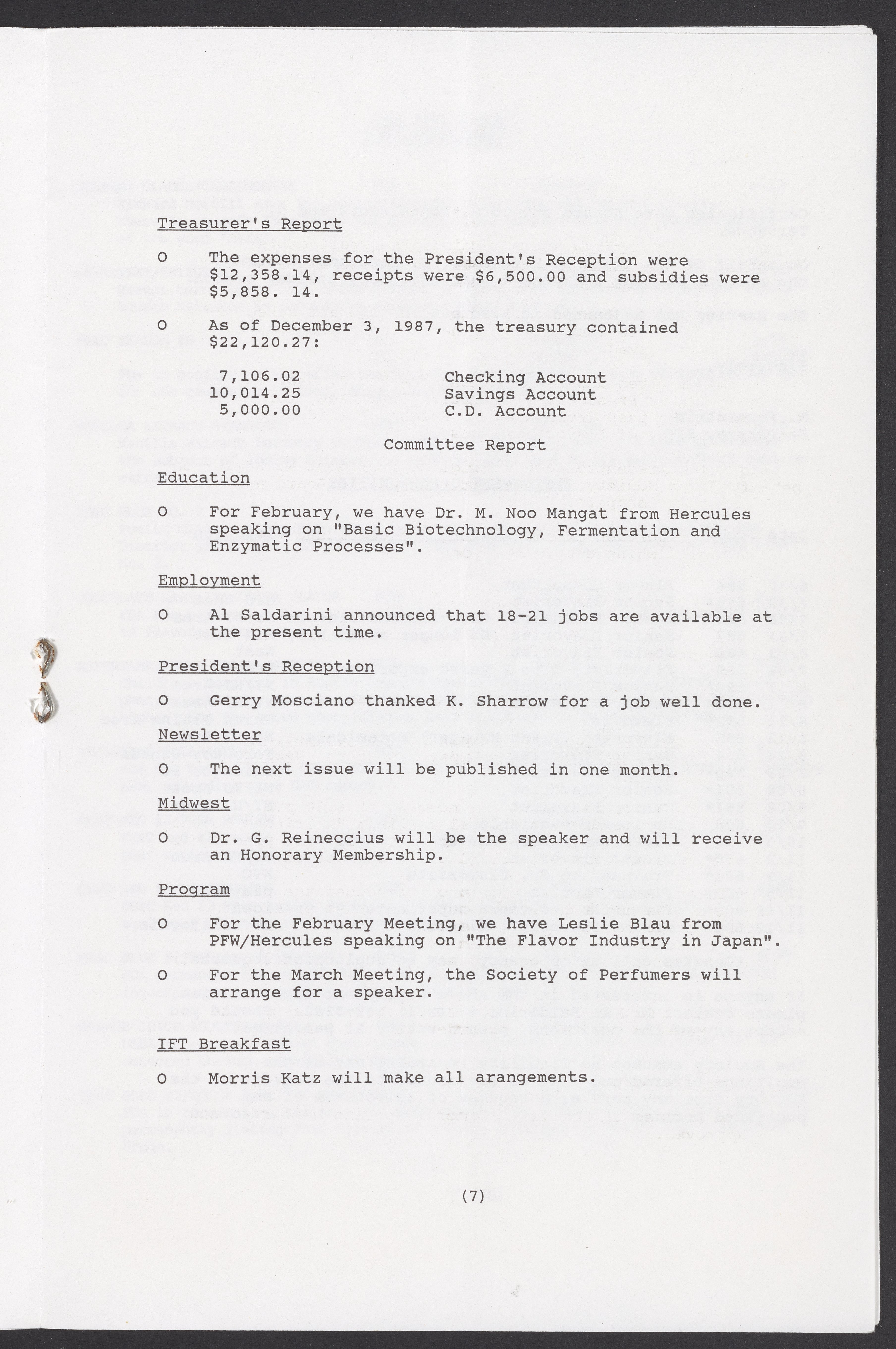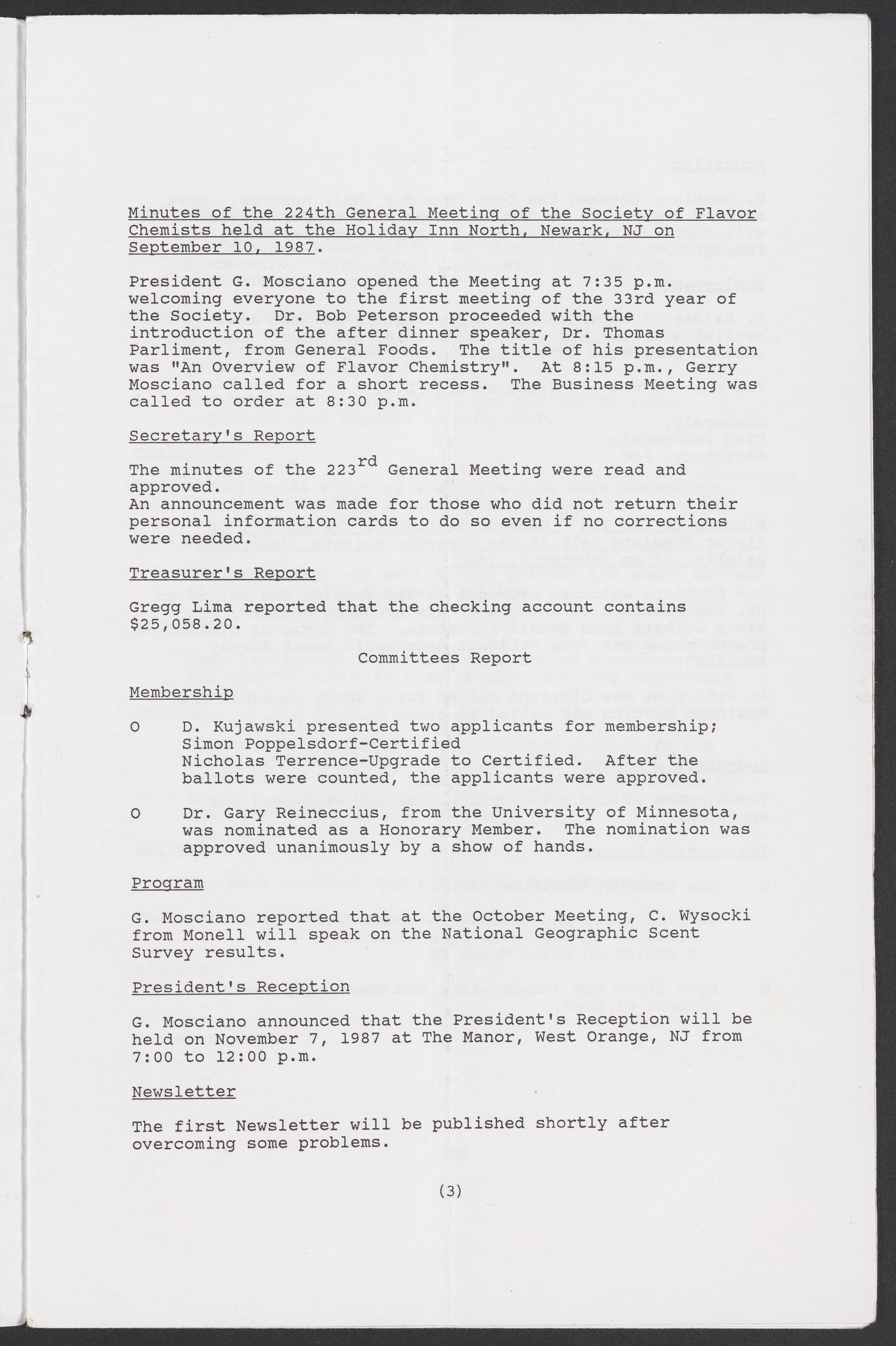 Society of Flavor Chemists newsletter, March 1988