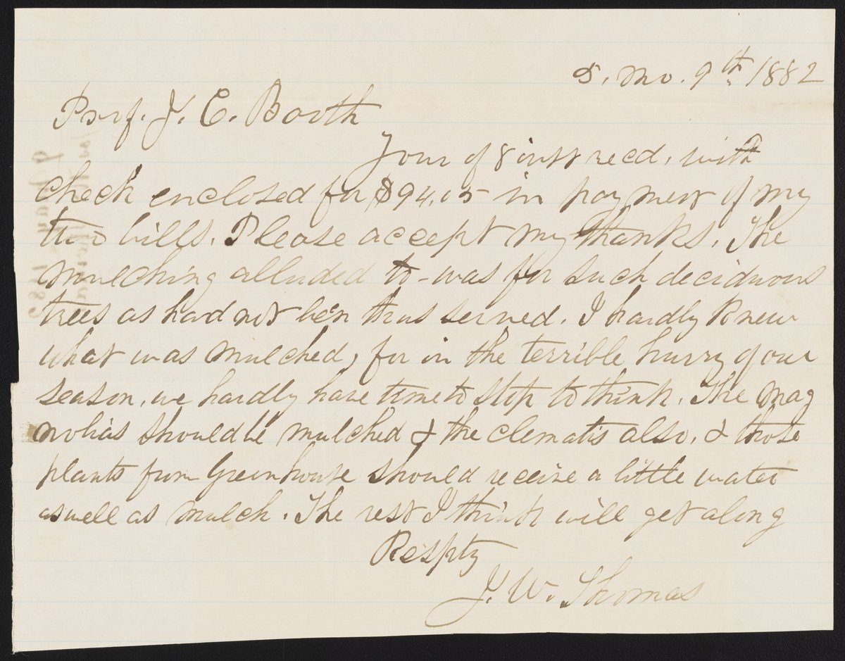 Small JPG1200 x 939px — 165 KBLarge JPG2880 x 2253px — 743 KBFull-sized JPG5234 x 4095px — 2.0 MBOriginal fileTIFF — 5234 x 4095px — 61.4 MBJoseph W. Thomas suggests James Curtis Booth (1810-1888) mulch his magnolia and clematis plants.