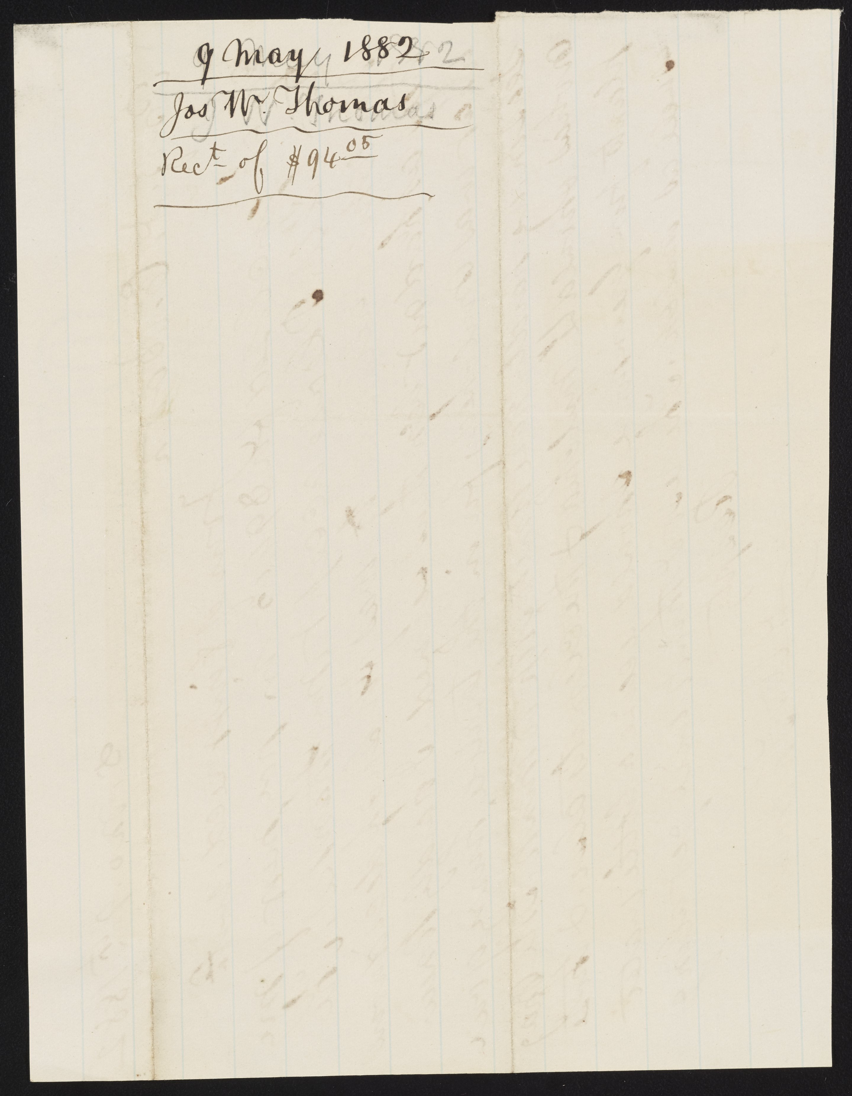 Letter from J.W. Thomas to James Curtis Booth, May 9, 1882