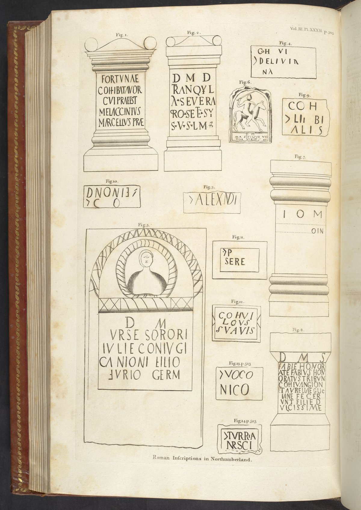 Camden, William. “Roman Inscriptions in Northumberland [Vol. III, Plate XXXII] .” In Britannia: or, a Chorographical Description of the Flourishing Kingdoms of England, Scotland, and Ireland, and the Islands Adjacent, Vol. 3. London, England: John Stockdale, 1806. https://digital.sciencehistory.org/works/7u0fg07.