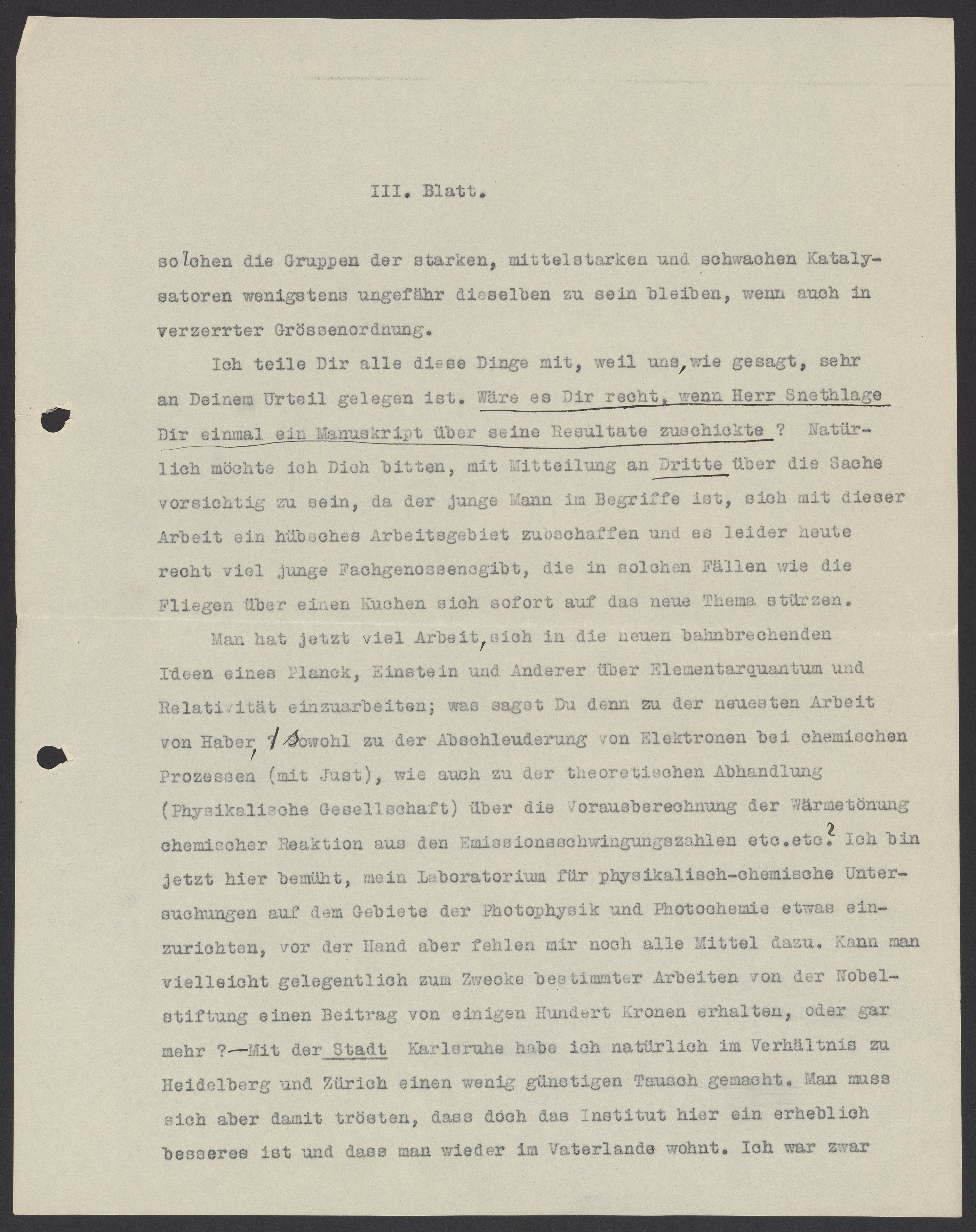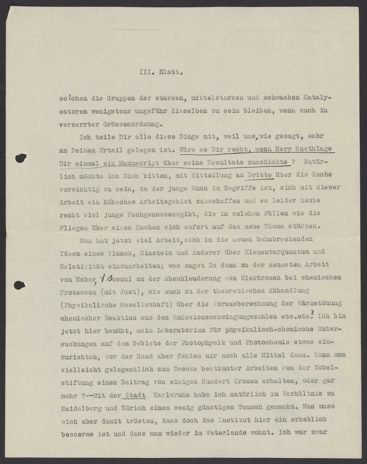 Letter from Georg Bredig to Svante Arrhenius, February 1912