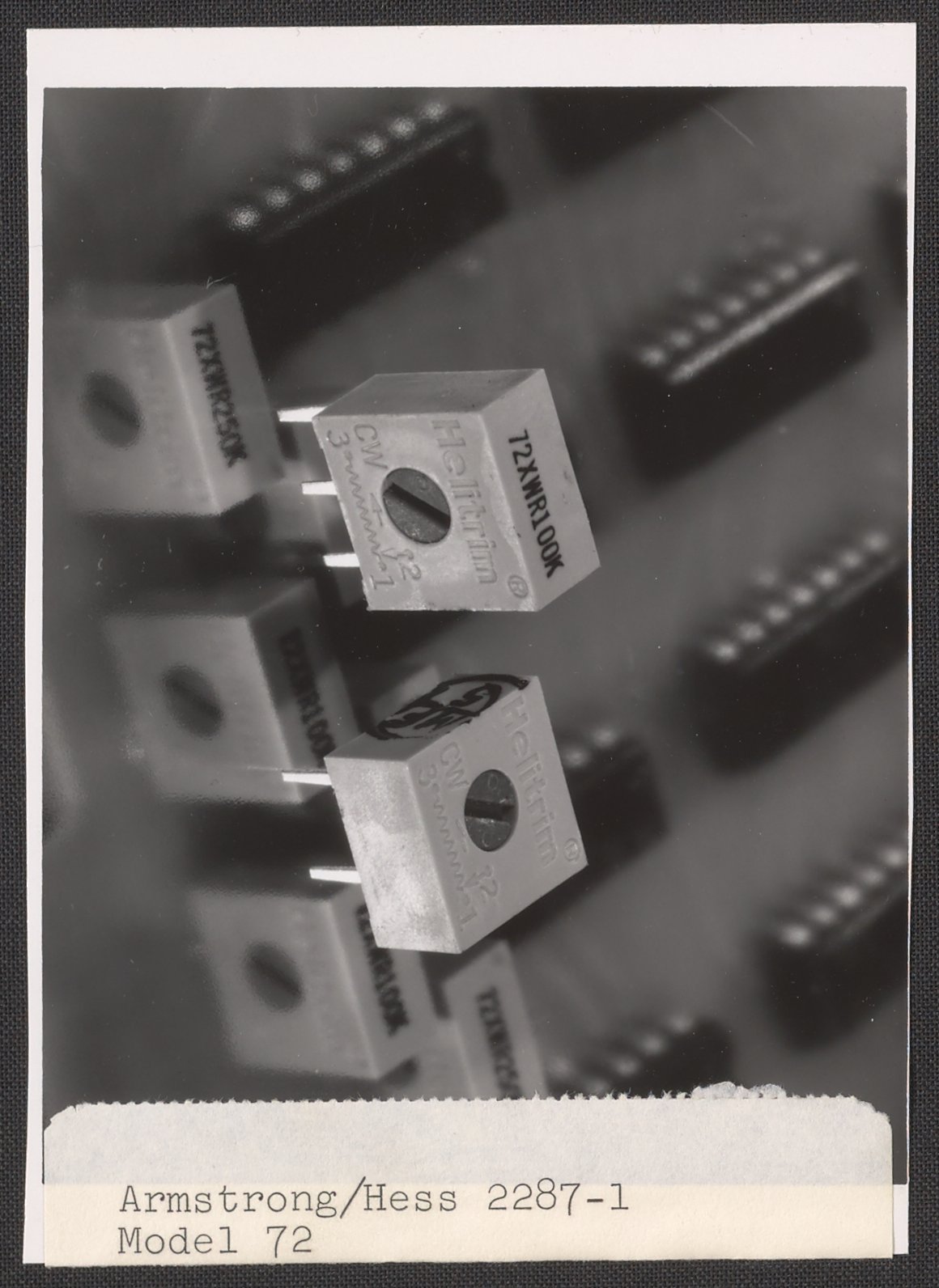 Armstrong & Hess. “Helipot Model 72 Helitrim Trimming Potentiometers,” 1950–1969. Beckman Historical Collection, Box 85. Science History Institute. Philadelphia. https://digital.sciencehistory.org/works/7w62f864c.