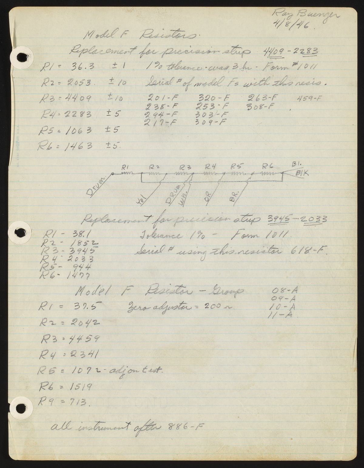 Model F resistor notes and diagrams
