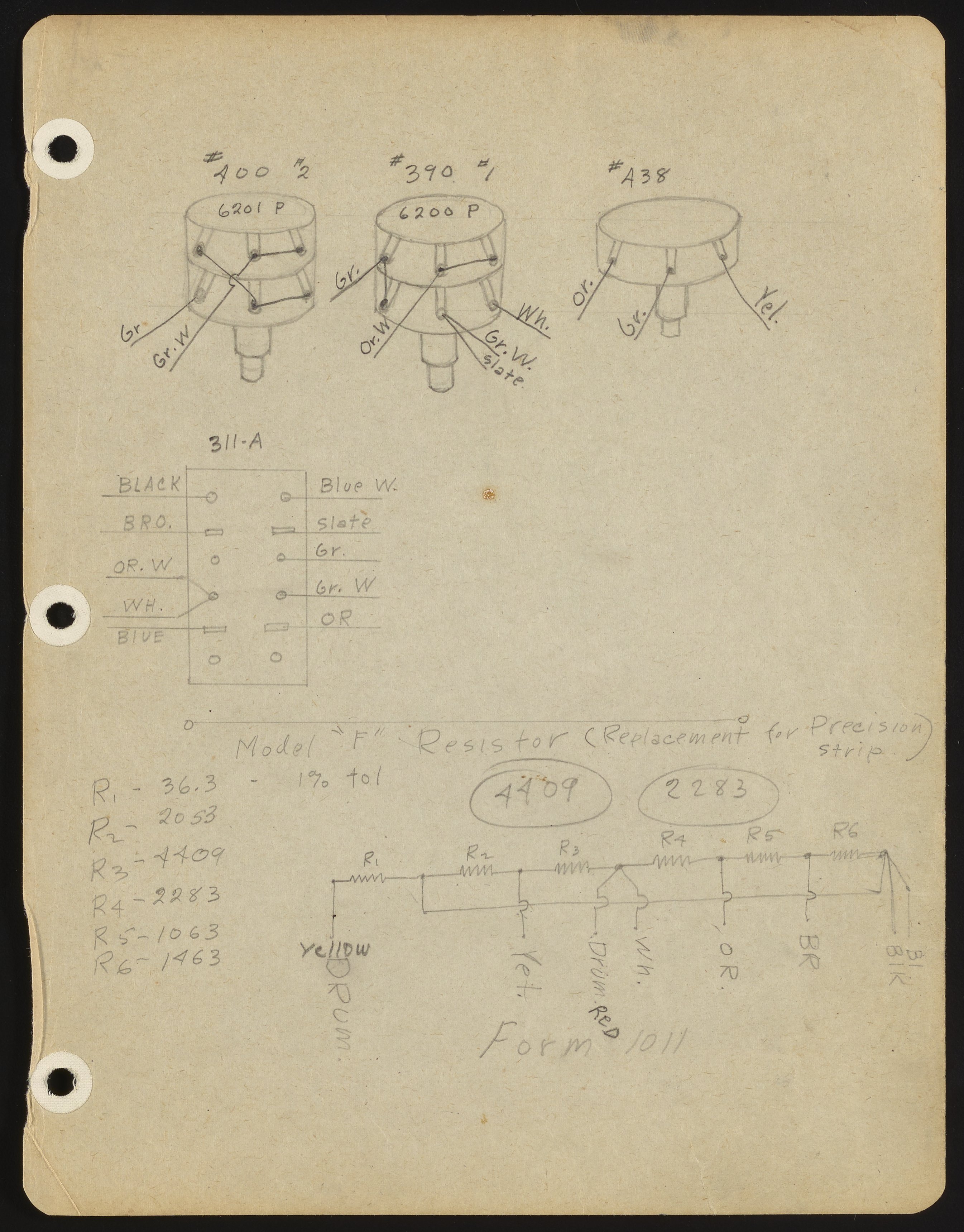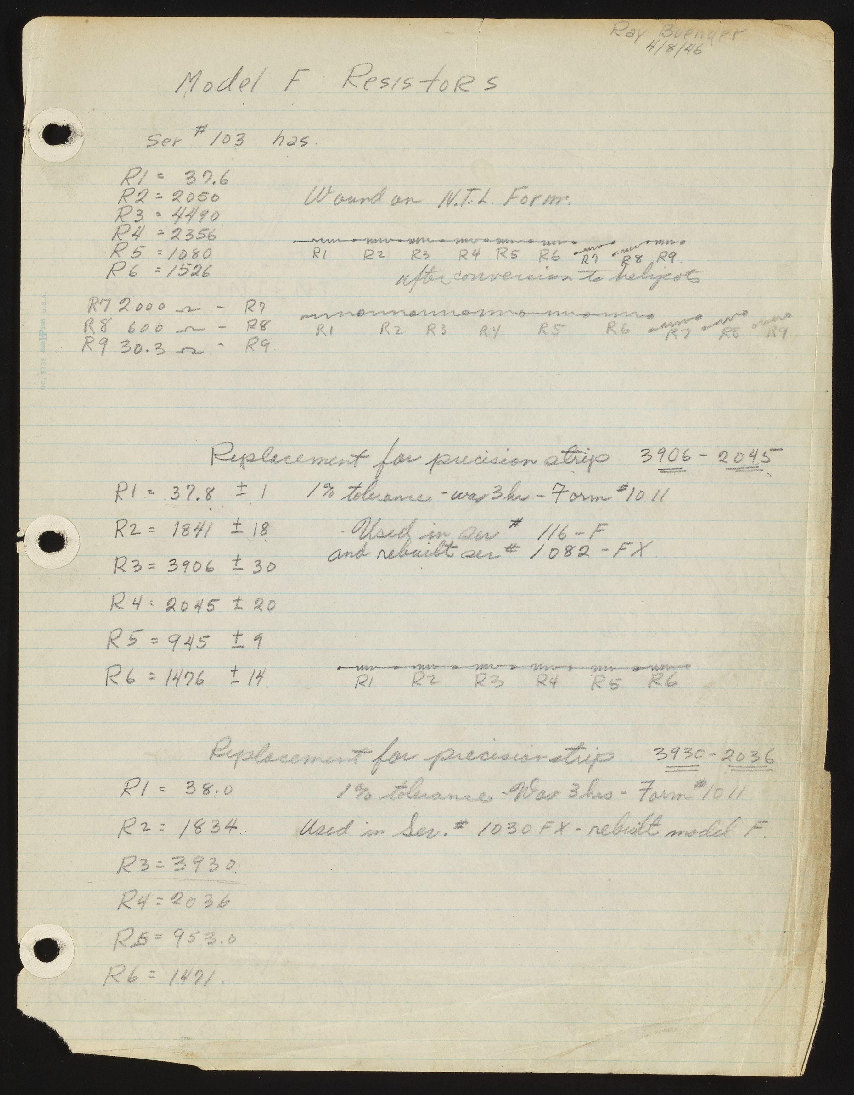 Model F resistor notes and diagrams