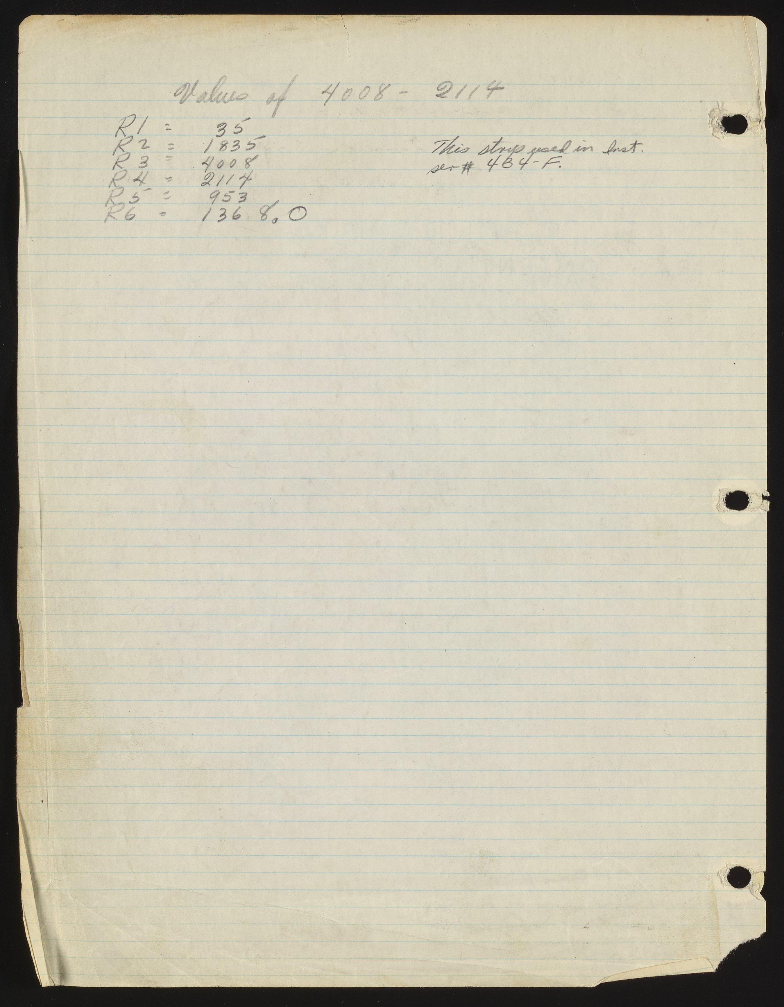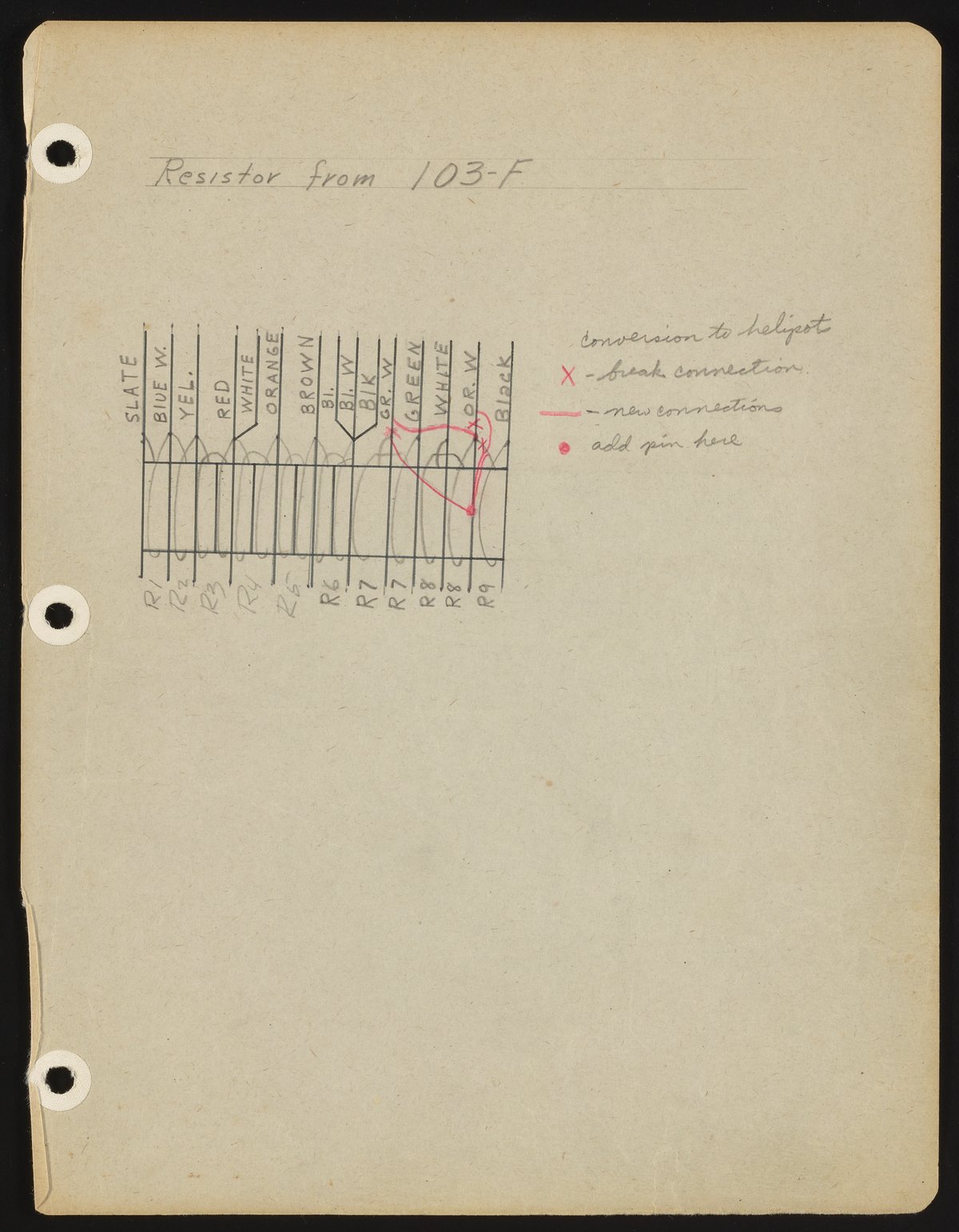 Small JPG1200 x 1540px — 231 KBFull-sized JPG2714 x 3482px — 976 KBOriginal fileTIFF — 2714 x 3482px — 27.1 MBHandwritten and -drawn notes detail the resistors used in the Model F pH meter.
