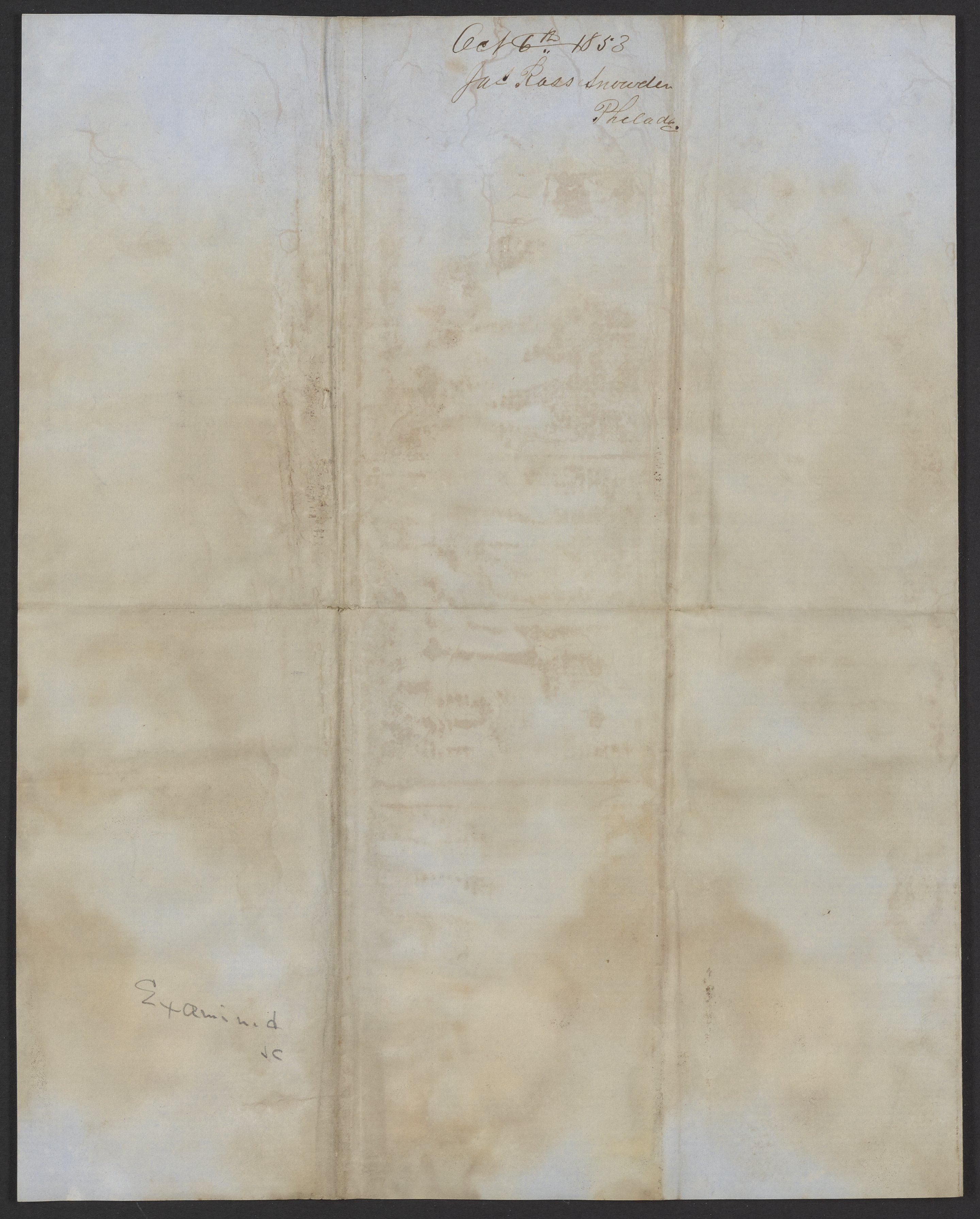 Letter from J. Ross Snowden to James Curtis Booth, October 6, 1853