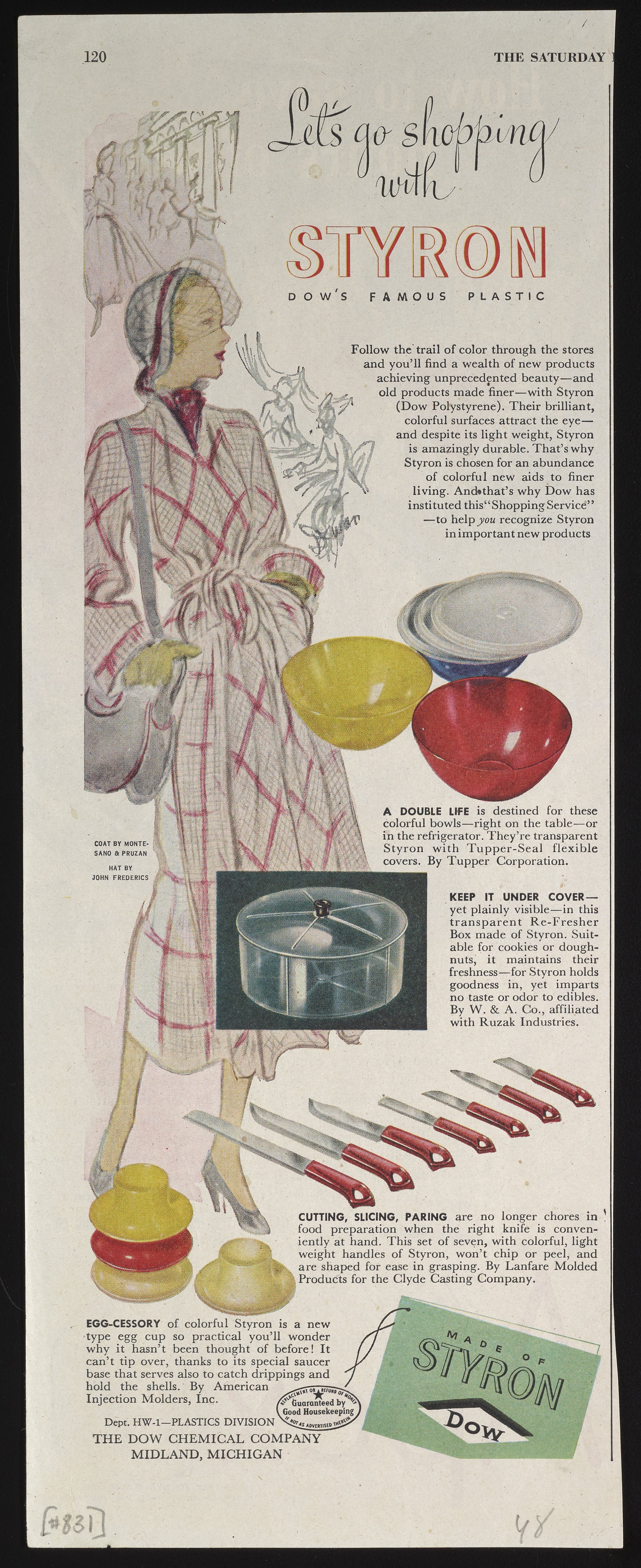 Dow Chemical Company. “Let's Go Shopping with Styron,” 1948. Advertisements from the Dow Chemical Historical Collection, Box 9. Science History Institute. Philadelphia. https://digital.sciencehistory.org/works/7x8i5x3.