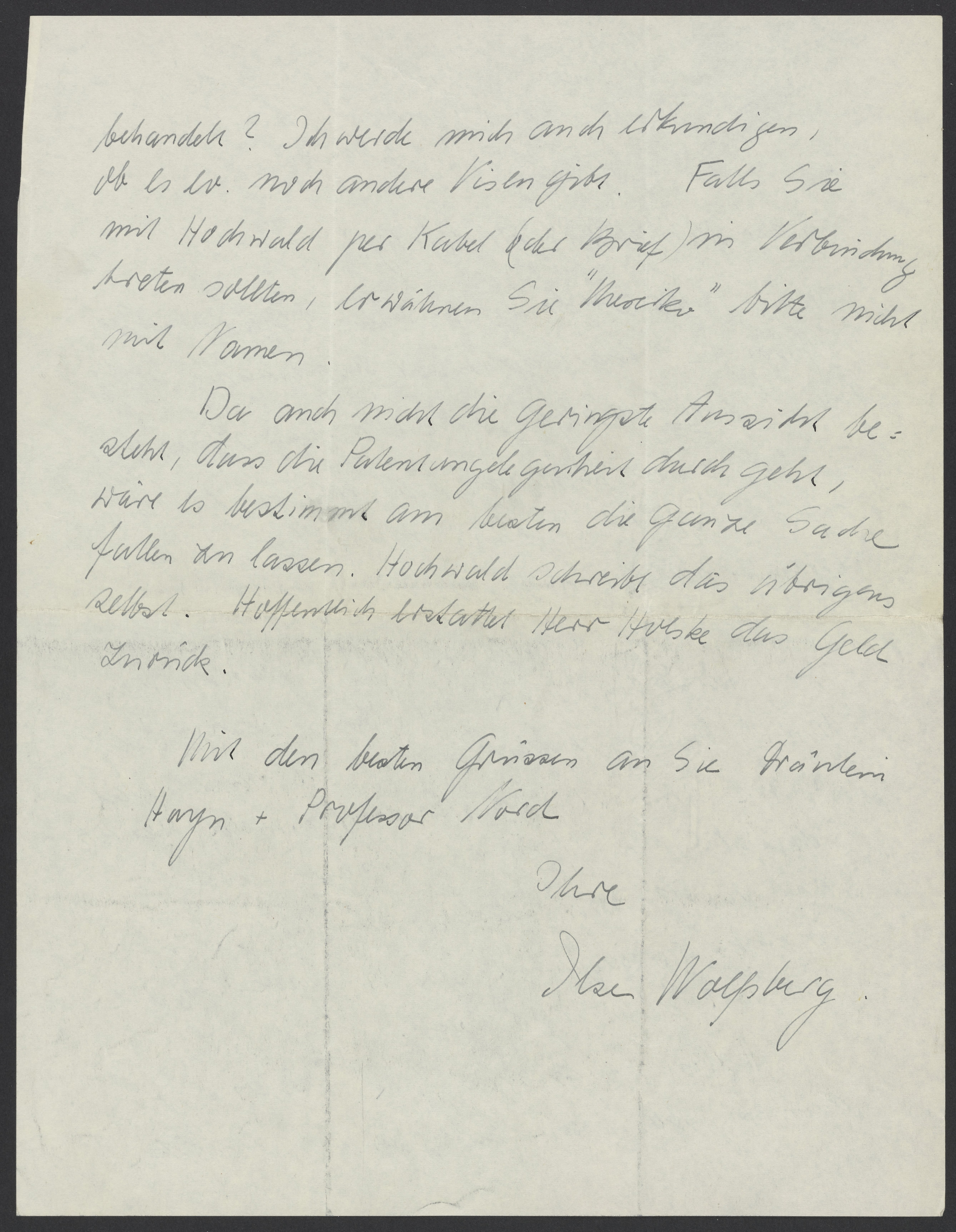I will also inquire if there are any other visas. If you by chance contact Hochwald by telegram (or letter), please do not mention “Mexico” by name.