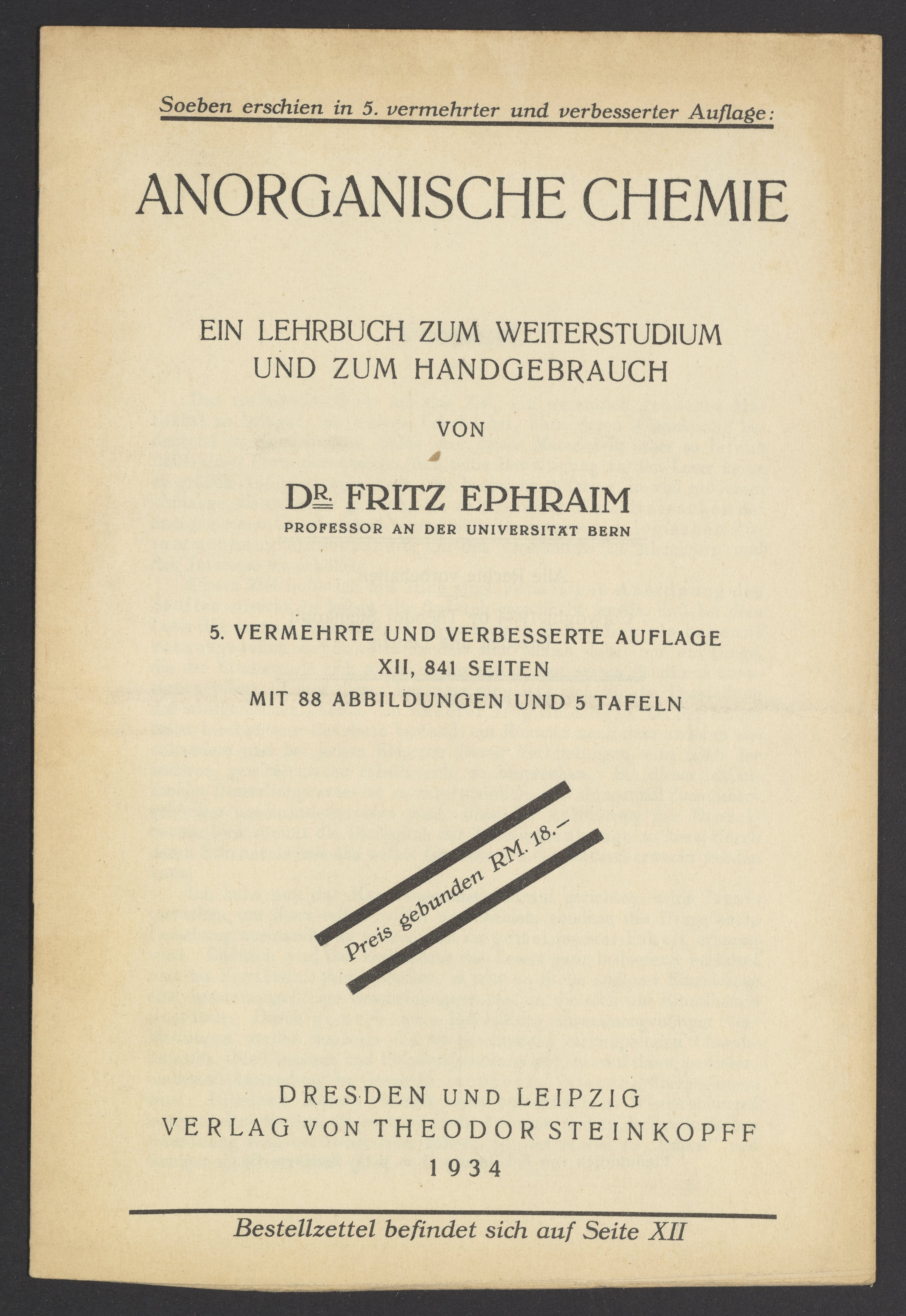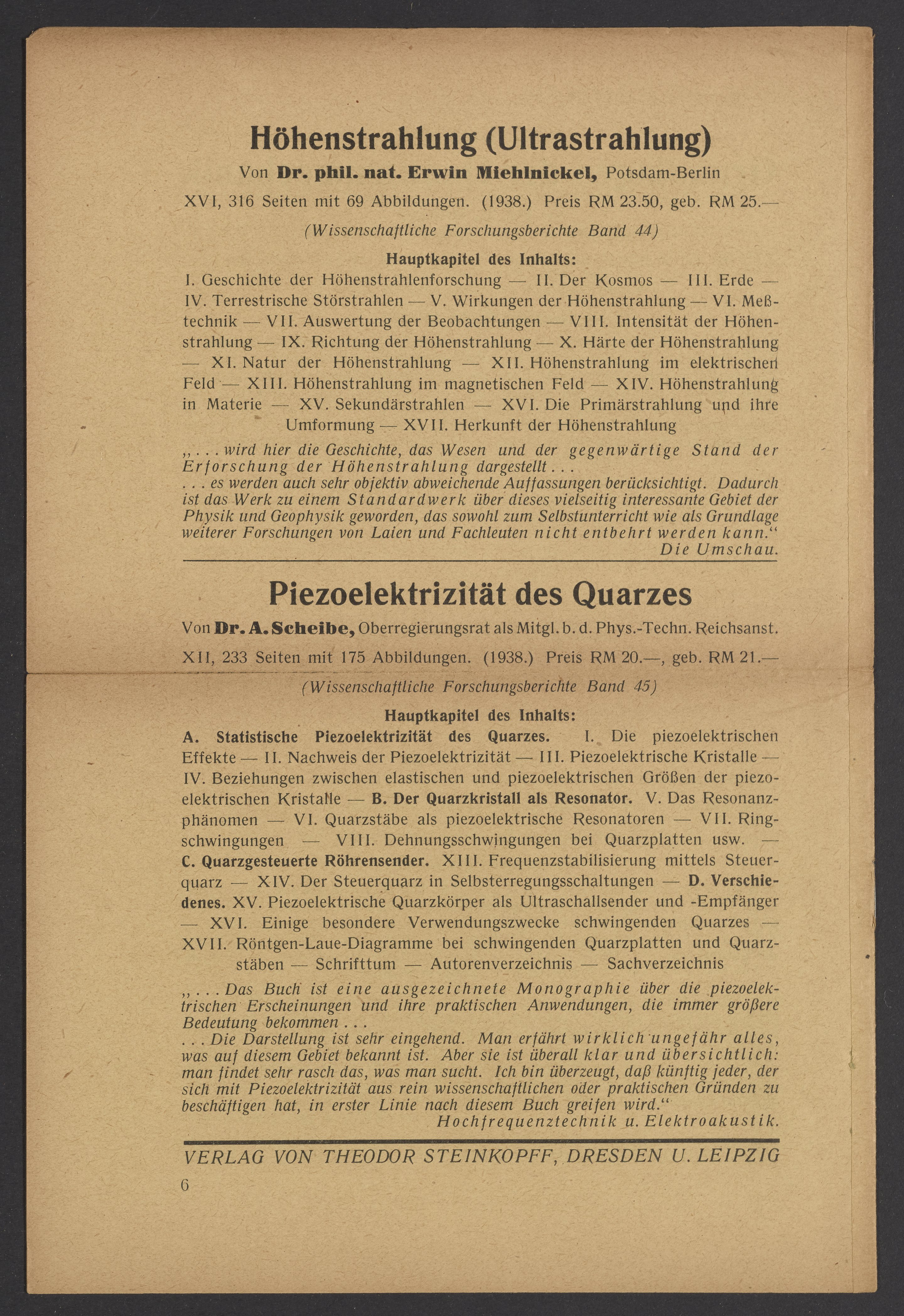 Advertisements for publications from Verlag von Theodor Steinkopff