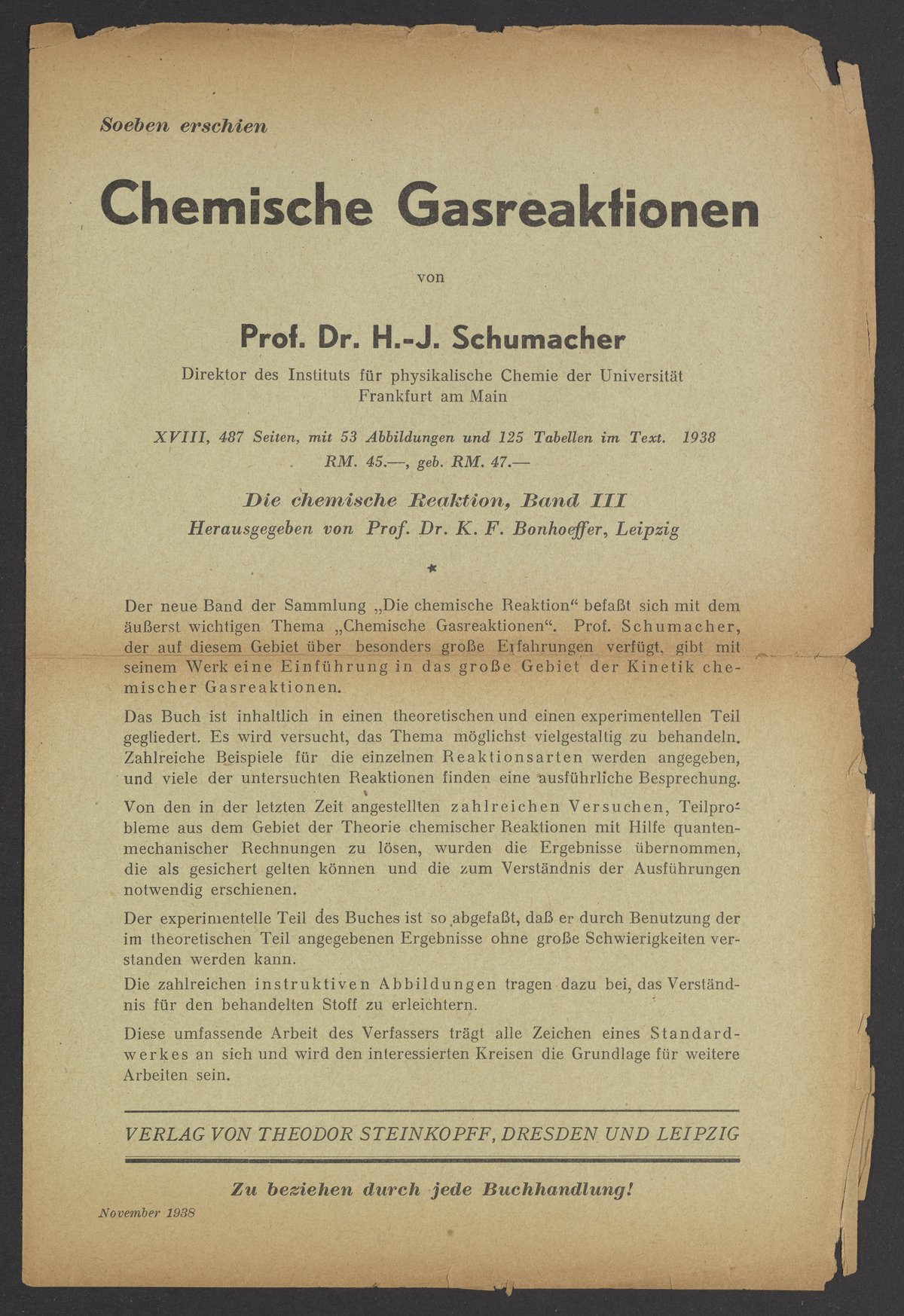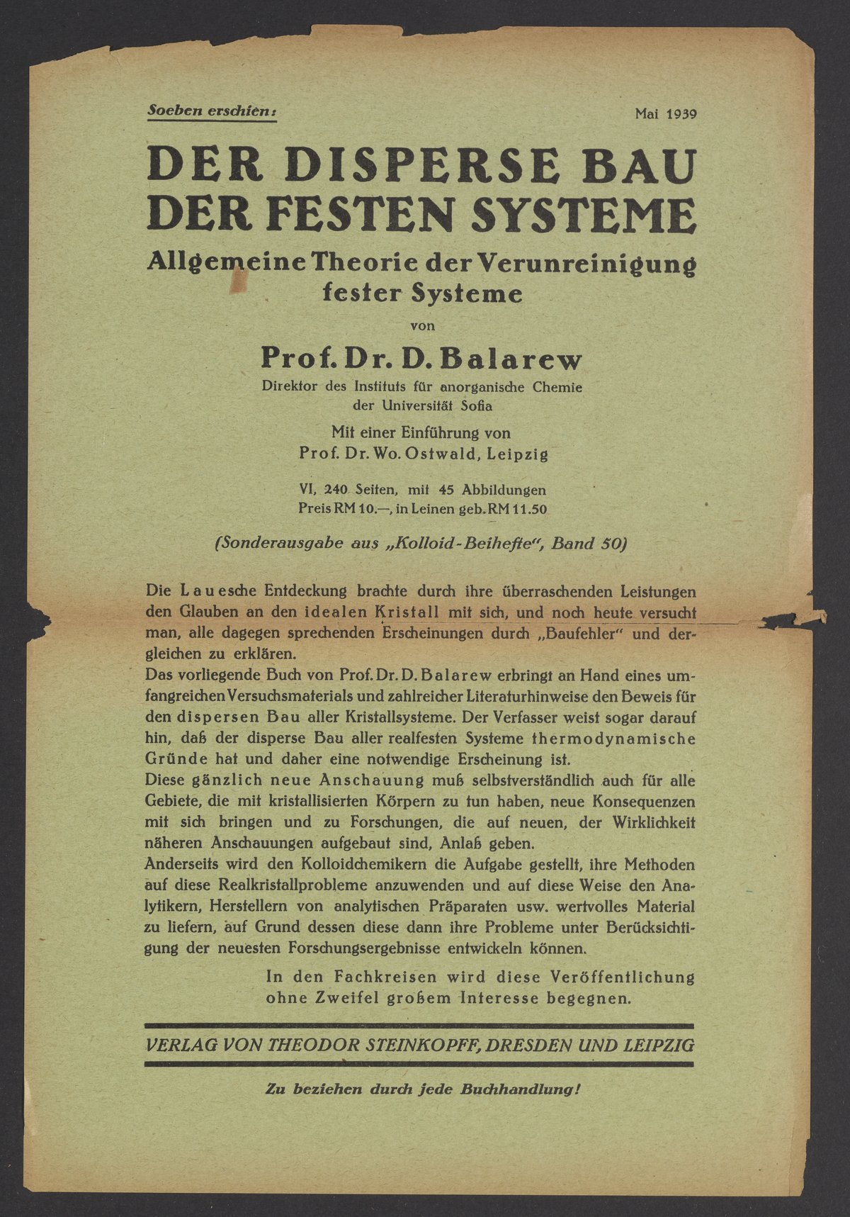 “Advertisements for Publications from Verlag Von Theodor Steinkopff.” Theodor Steinkopff, circa 1927–1939. Papers of Georg and Max Bredig, Box 3, Folder 5-6. Science History Institute. Philadelphia. https://digital.sciencehistory.org/works/7z2359v.