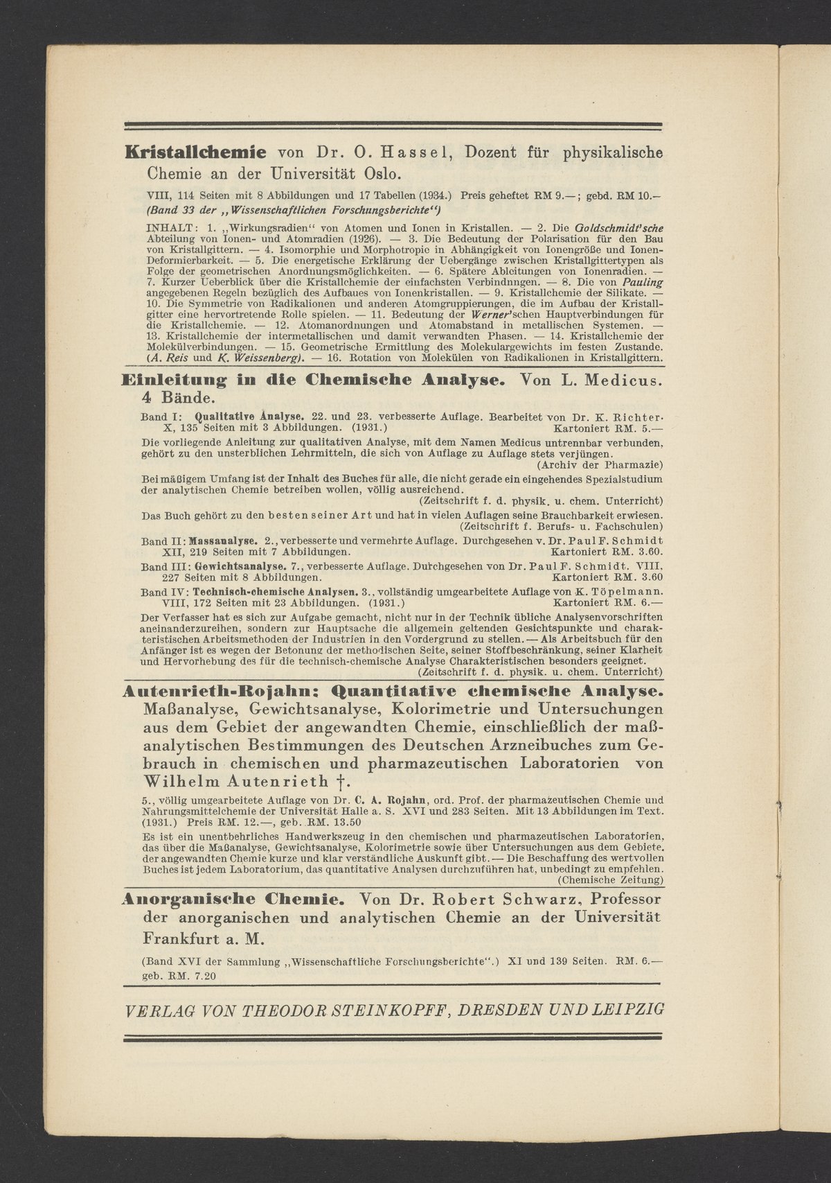 Advertisements for publications from Verlag von Theodor Steinkopff
