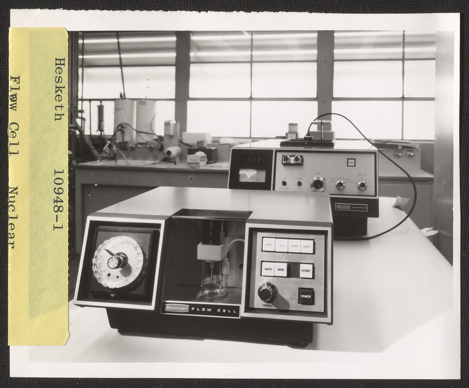 Beckman Flow Cell on bench with Beta-Mate II counter